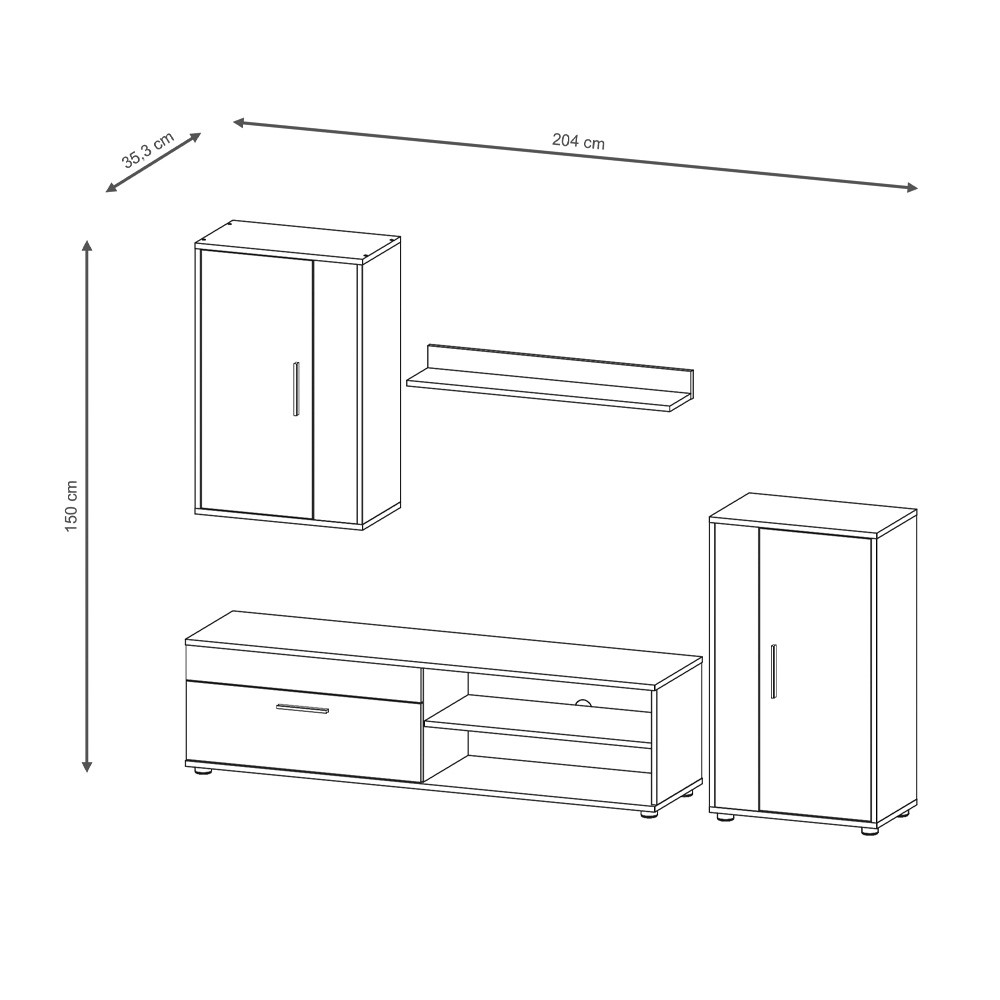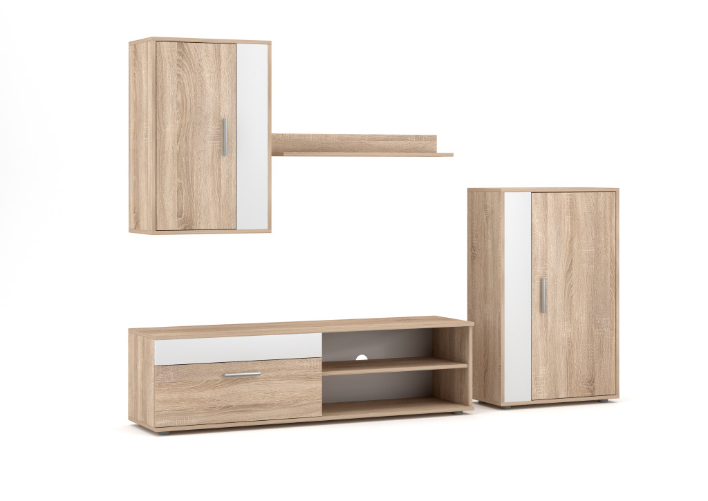 Nappali bútorfal Sonoma tölgy / fehér színkombinációban – BERNO