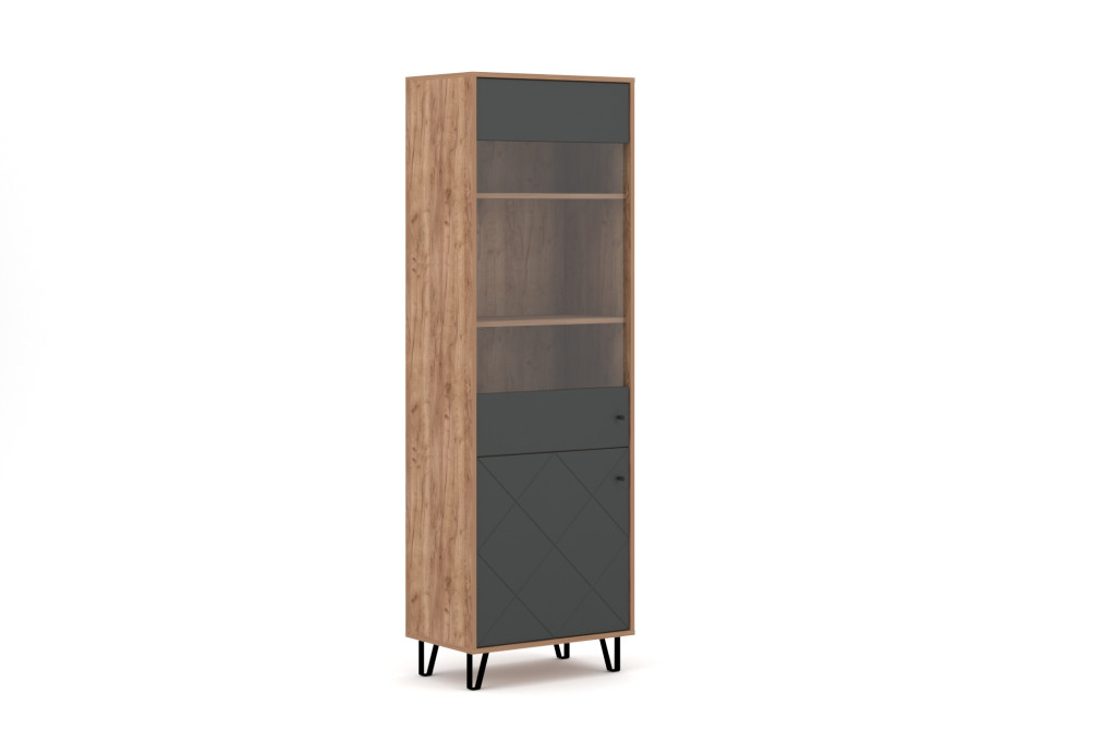 Vitrin szekrény 2 ajtós Craft Tobacco / grafit színkombinációban – BILBAO BL14