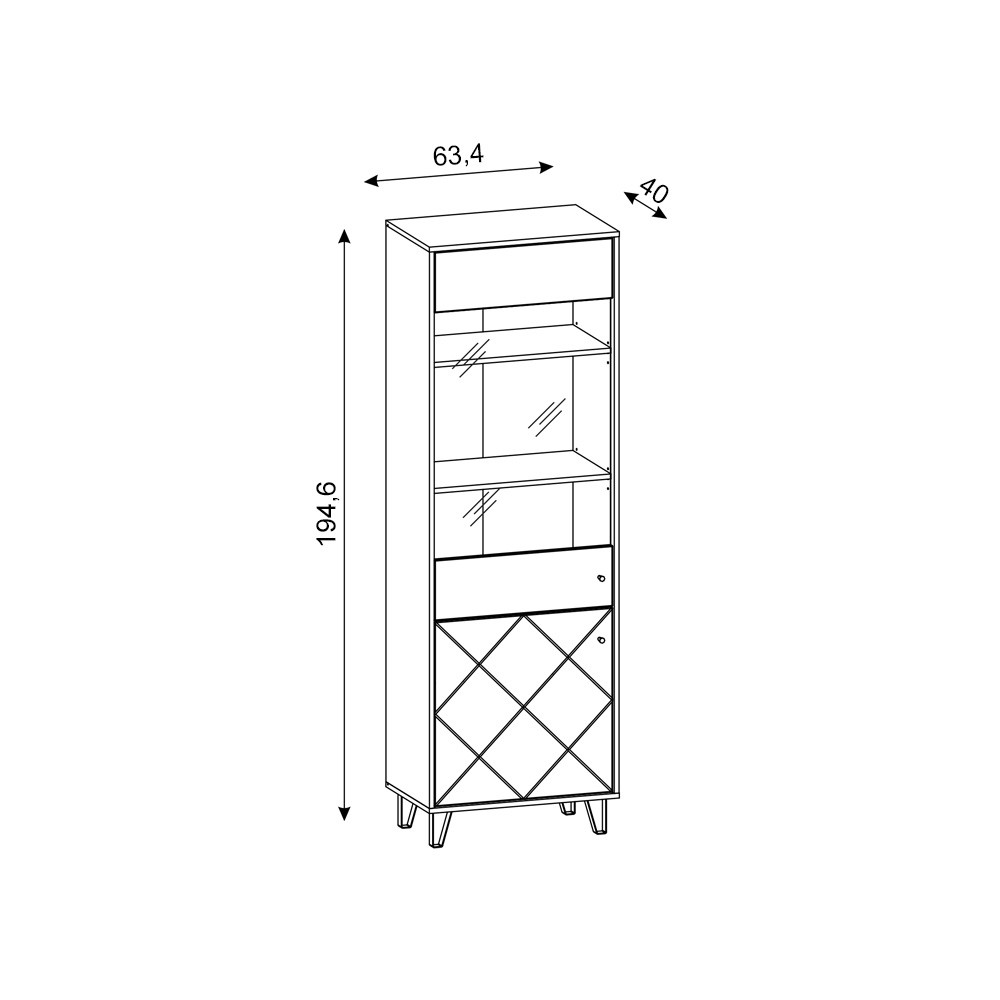 Vitrin szekrény Artisan tölgy / fehér matt színkombinációban – BILBAO BL14