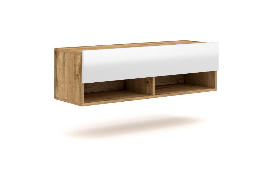 TV szekrény 100 cm 1 ajtós Wotan tölgy / fehér magasfény színkombinációban – DERBY