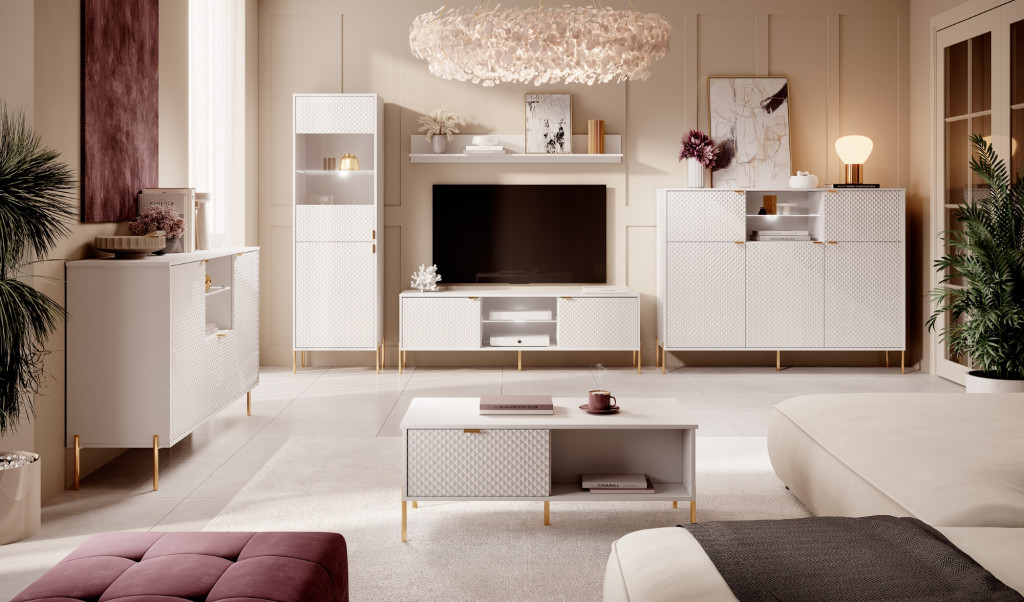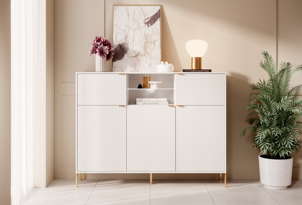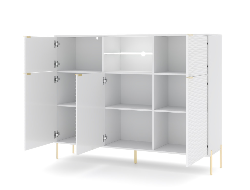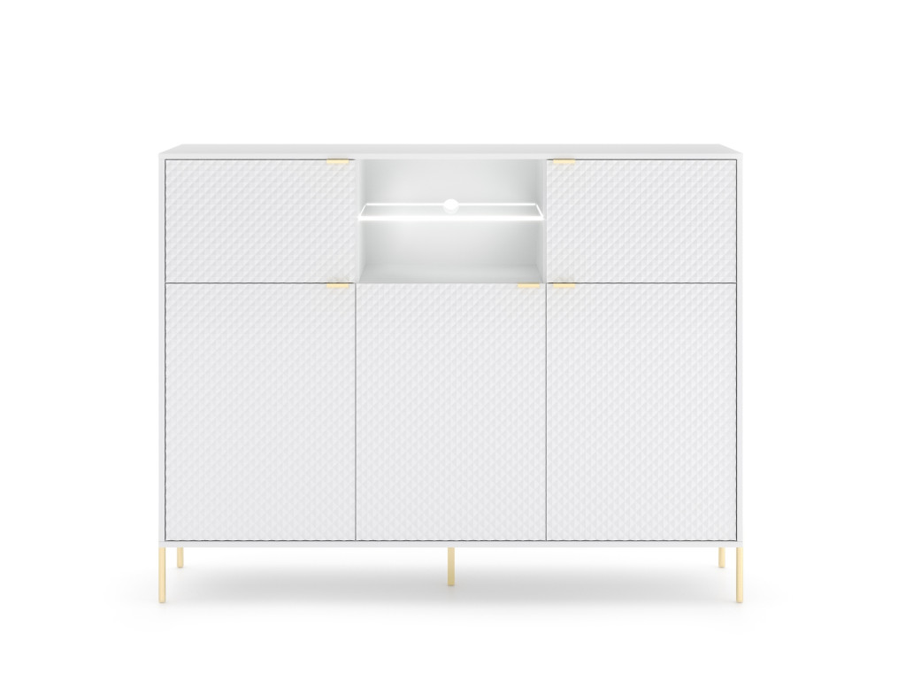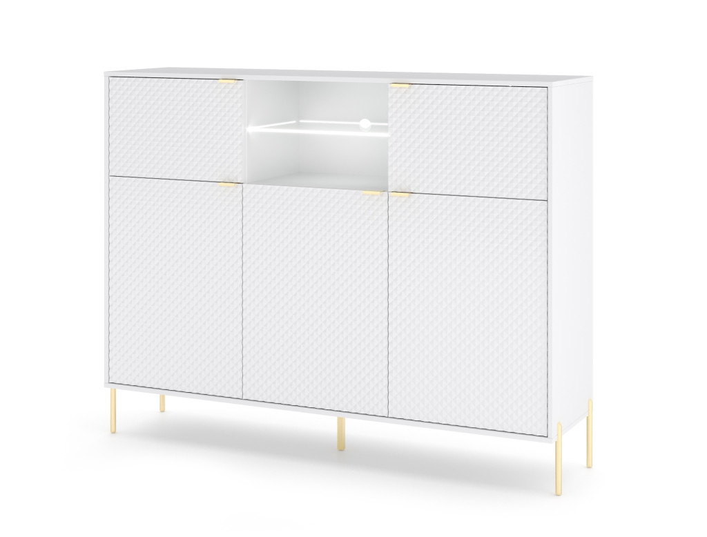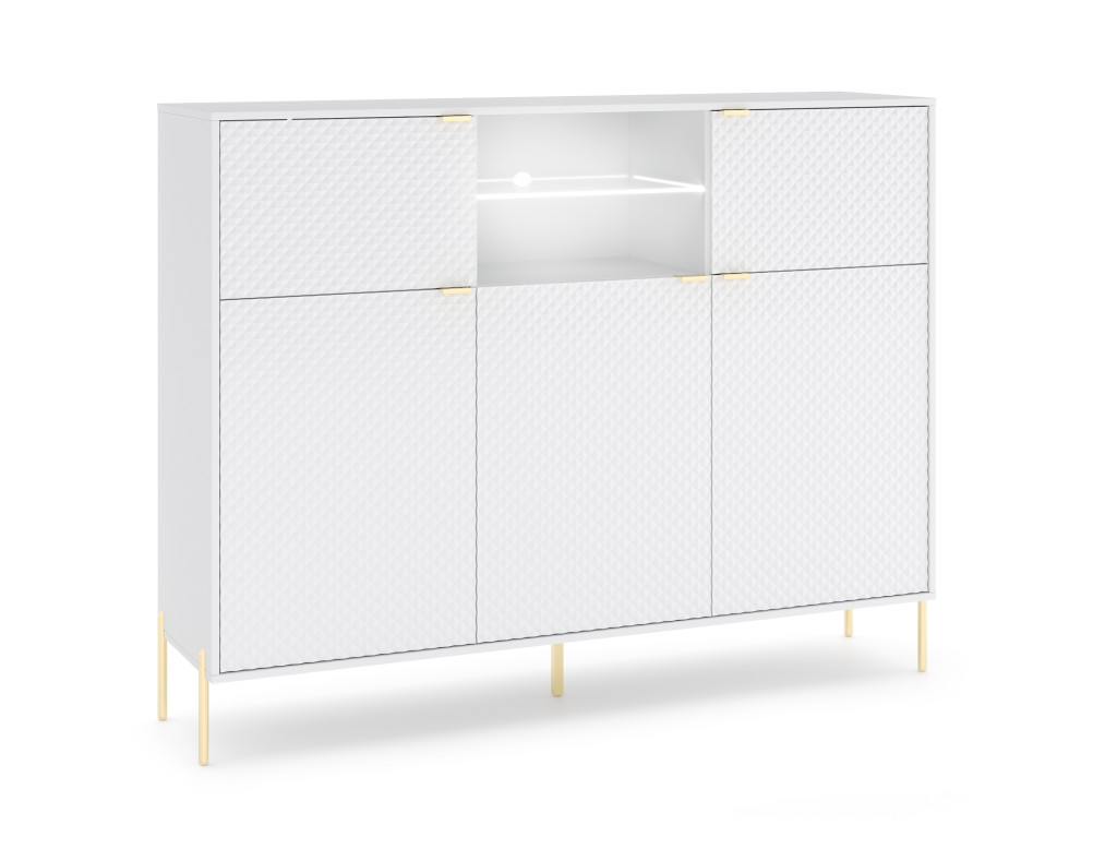 Komód 5 ajtós fehér / fehér magasfény színkombinációban LED világítással – DIAMOND DI03