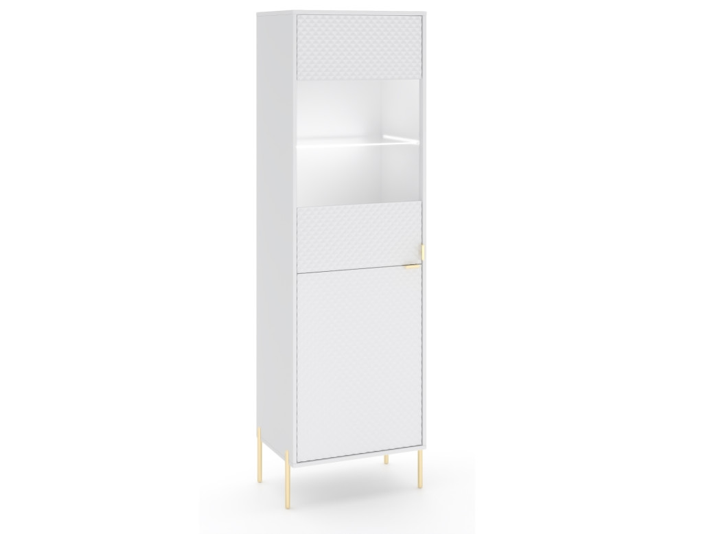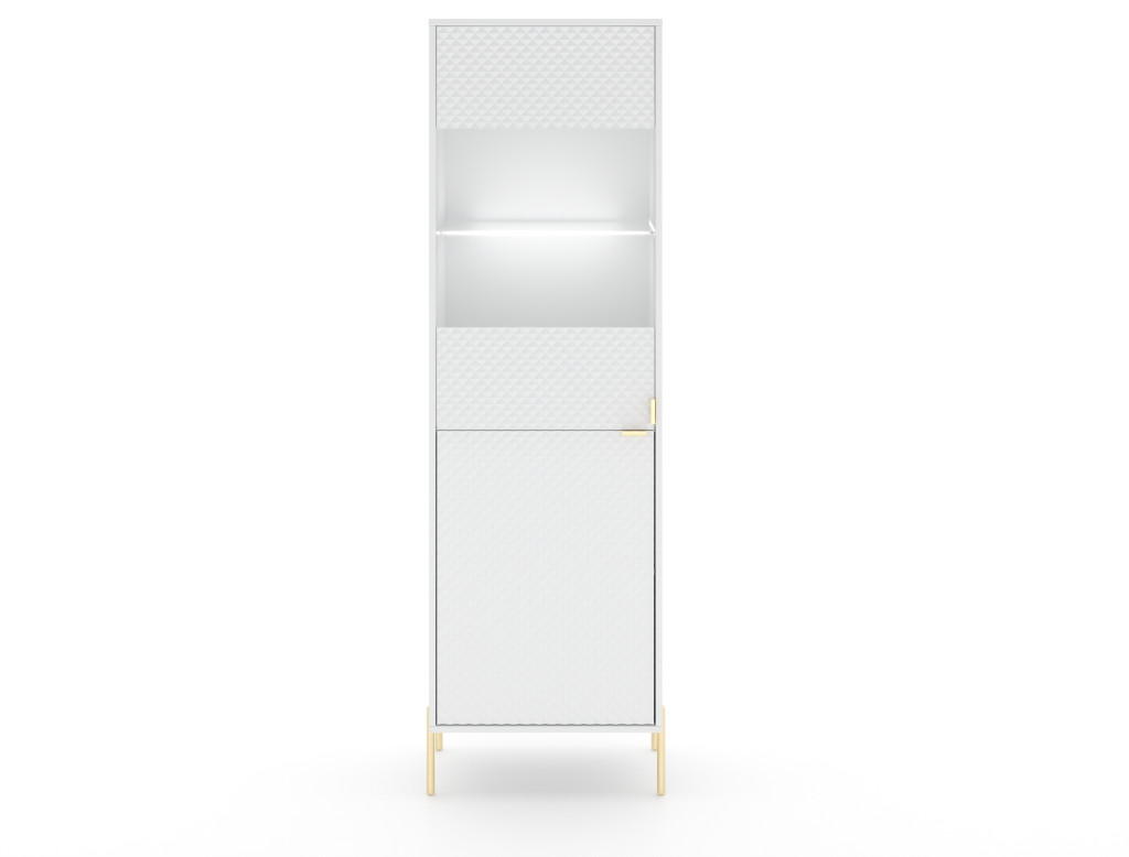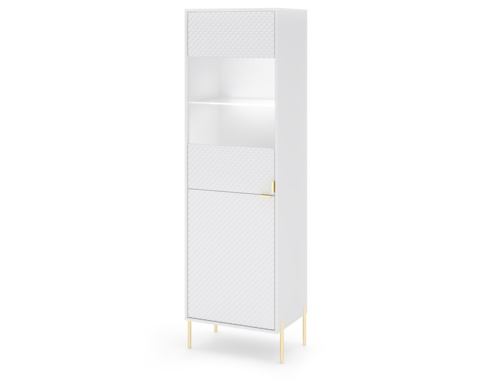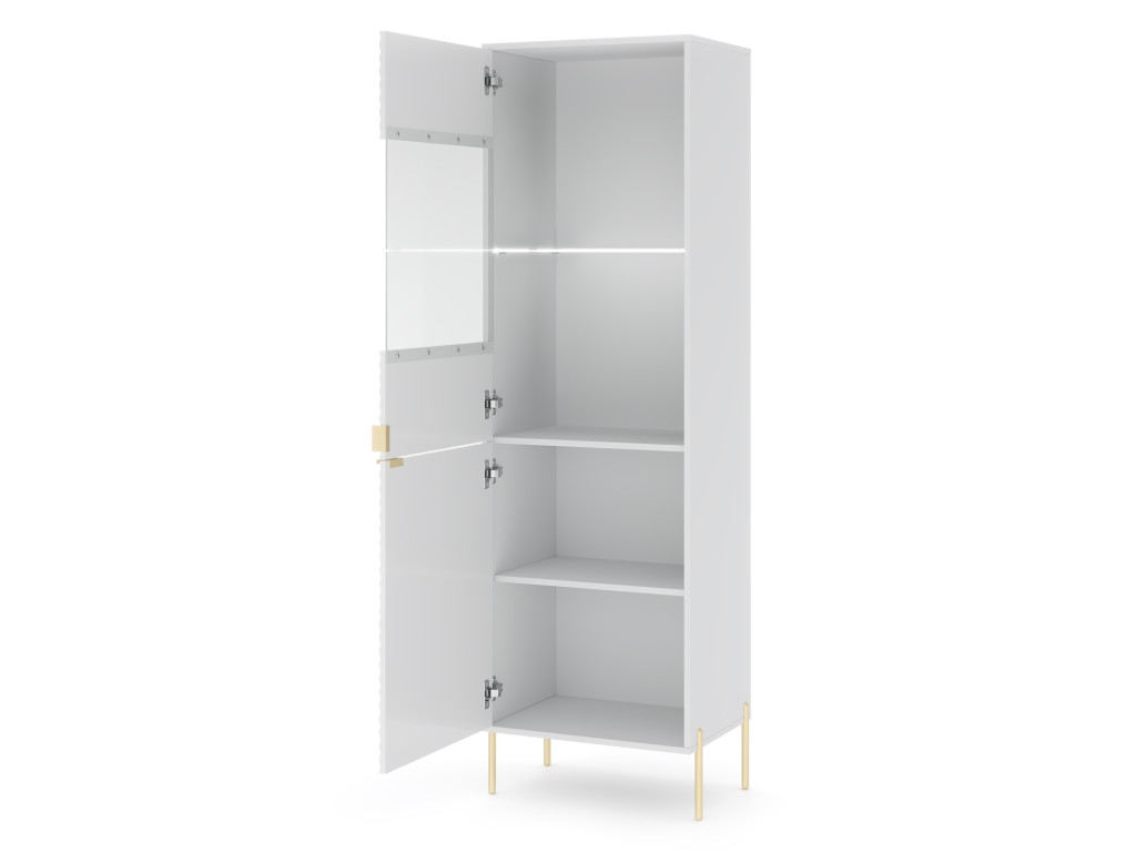 Vitrin szekrény 2 ajtós fehér / fehér magasfény színkombinációban LED világítással – DIAMOND DI04