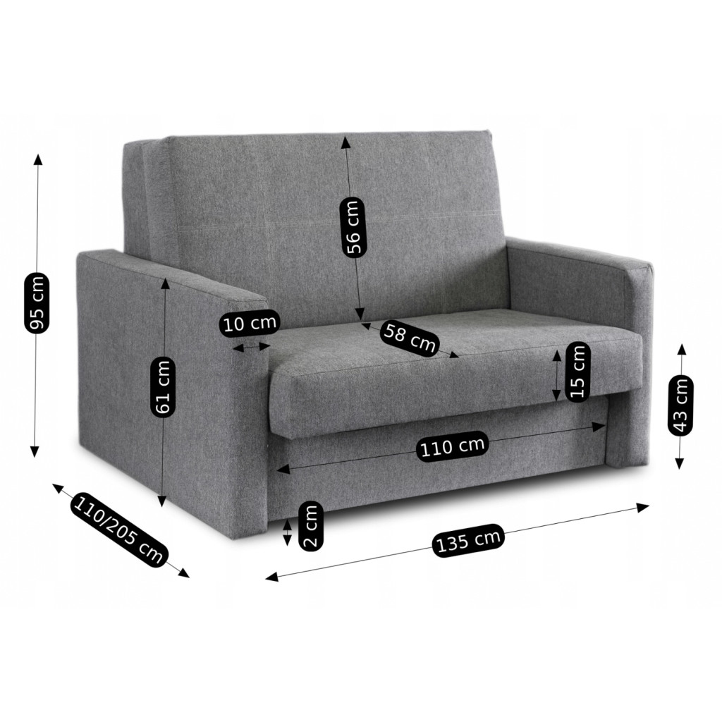 Kétszemélyes kihúzható fotelágy szürke színben – MILAN 2