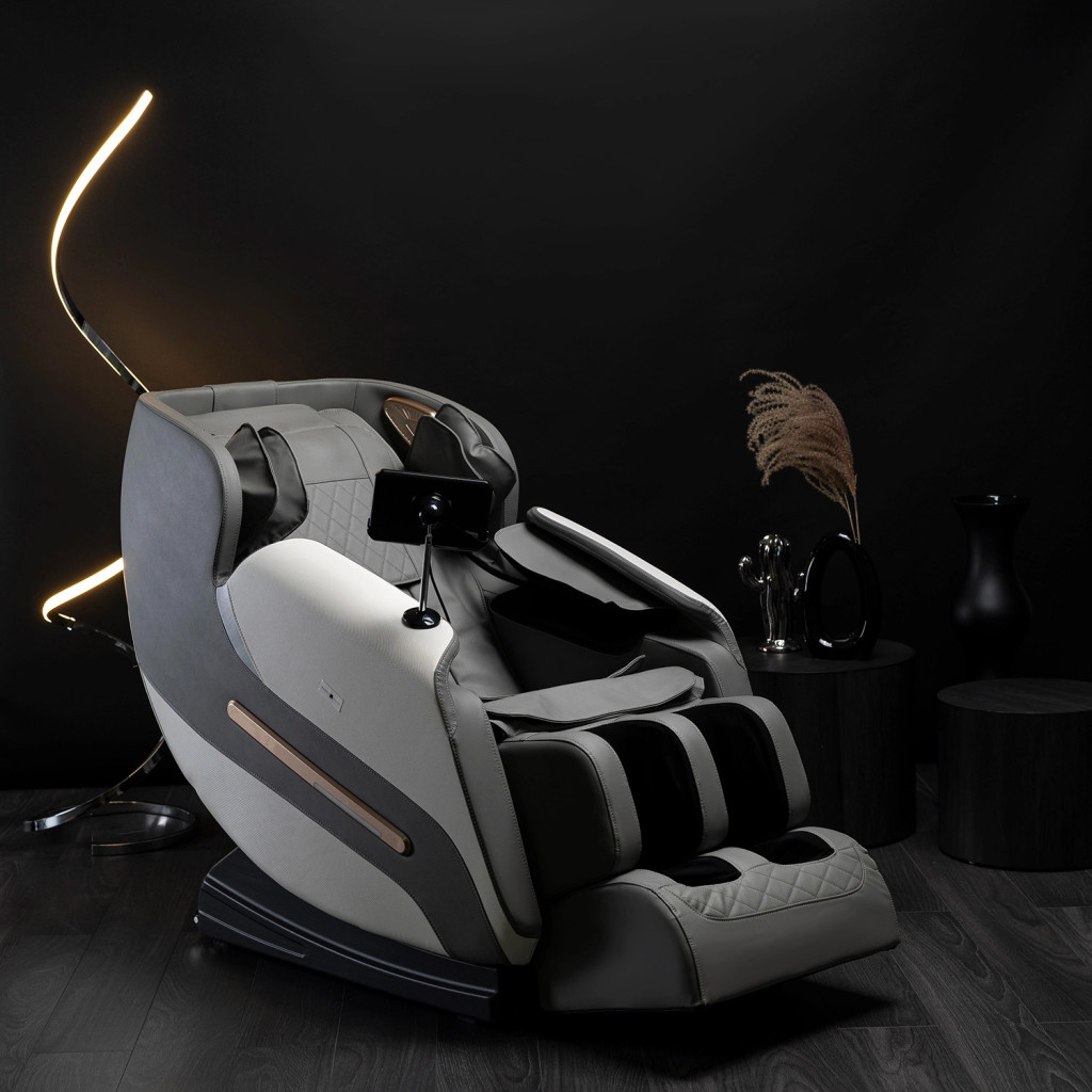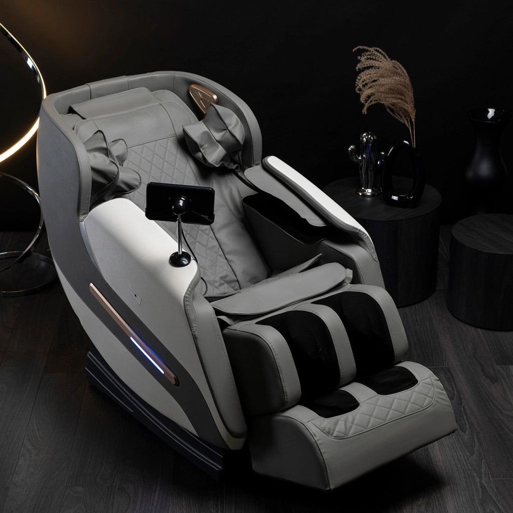 Masszázsfotel szürke színben, műbőr kárpittal. (Angol Menűvel) VX MAX