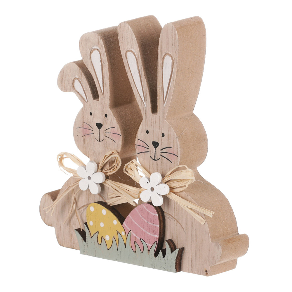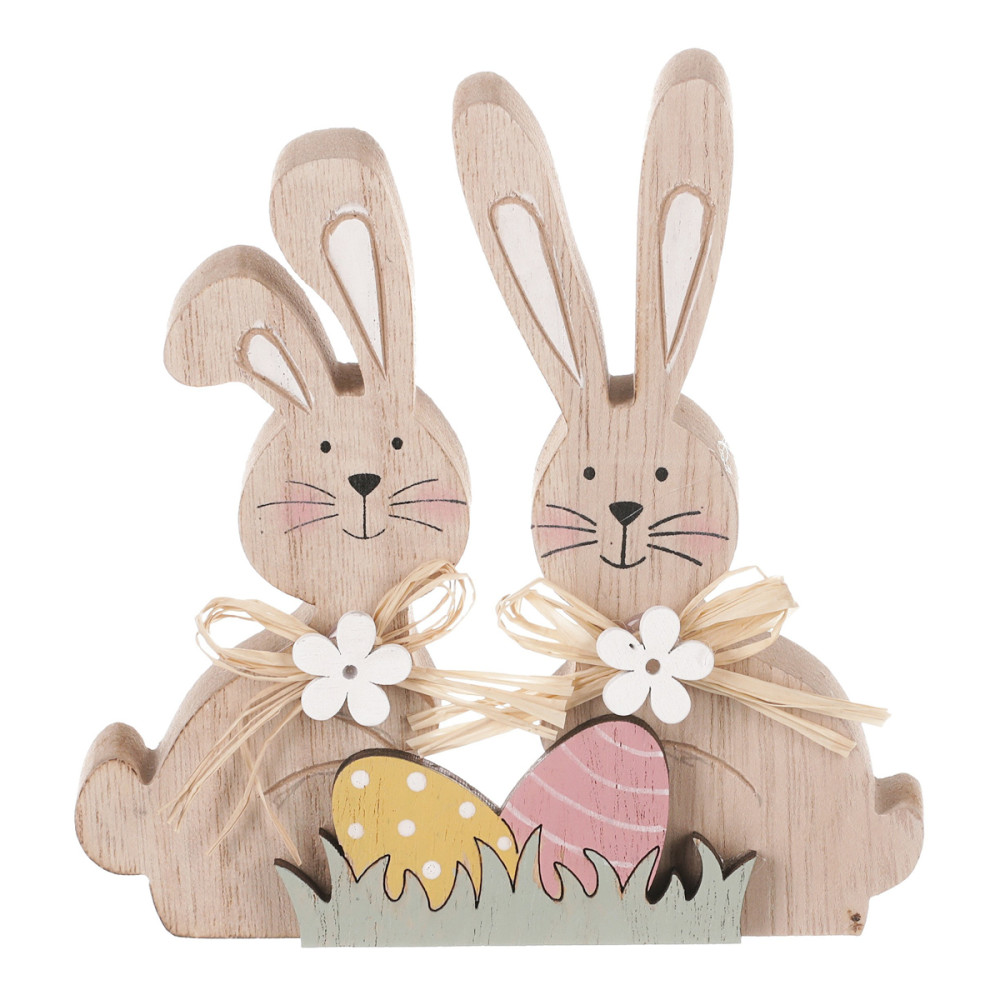 Ezek a cuki nyuszik és tojások kiváló minőségű fából készültek, és természetes színükkel igazi frissességet csempésznek a térbe. A finom részletek és a precíz kidolgozás teszik különlegessé ezeket az apró dekorációkat, melyekkel könnyedén feldobhatod az otthonodat a húsvéti időszakban.