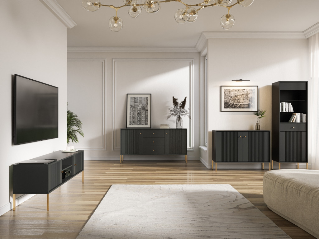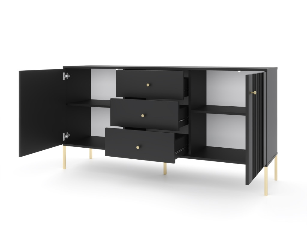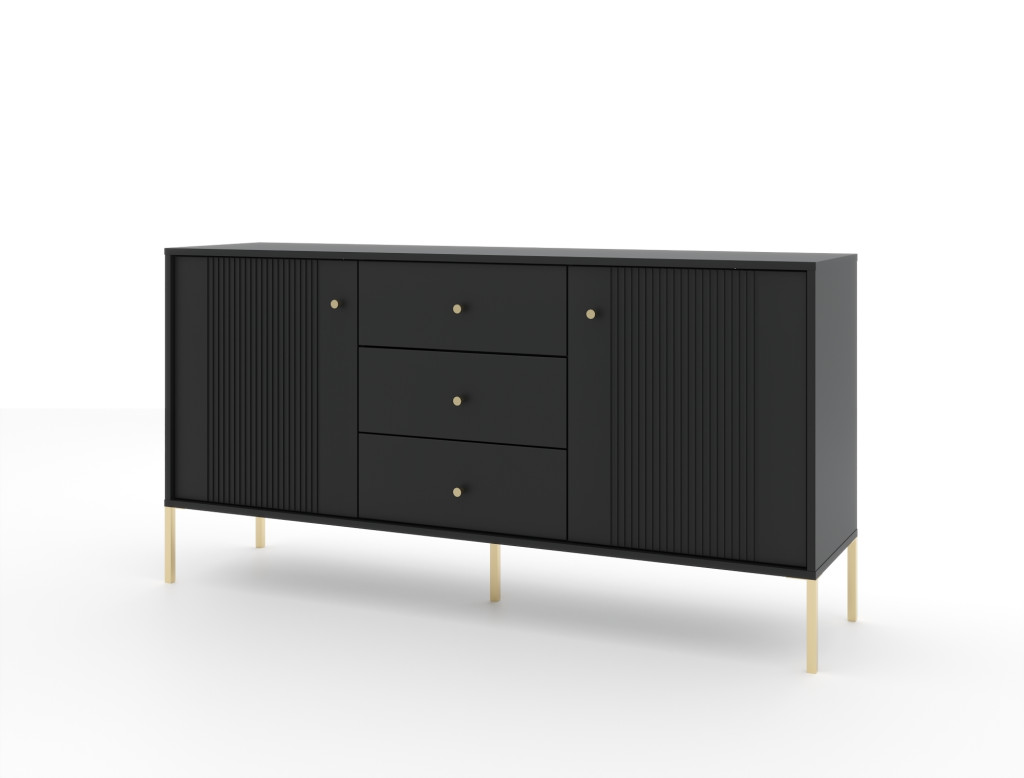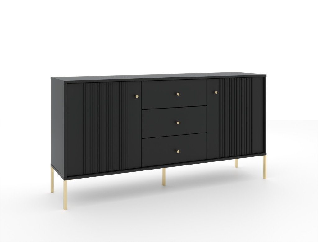 Komód 2 ajtóval és 3 fiókkal fekete színben arany fogantyúkkal – ISEO IS03