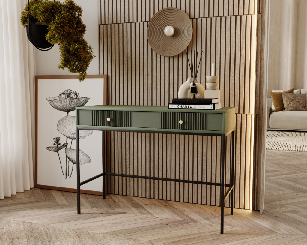 Fésülködőasztal 2 fiókkal smoke green színben arany fogantyúkkal – ISEO IS07