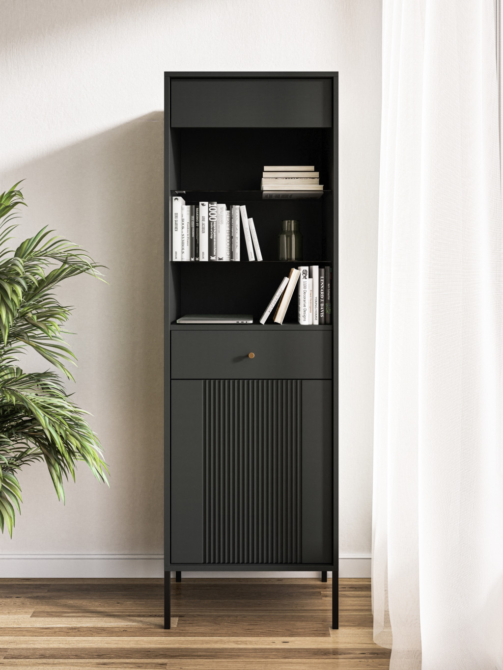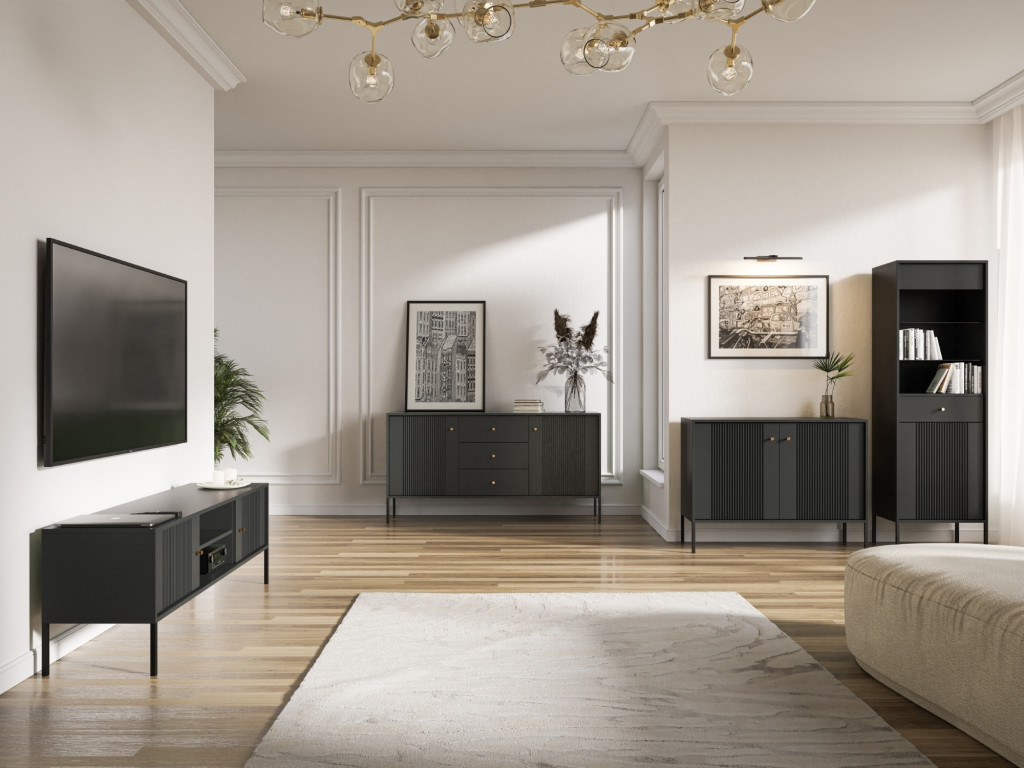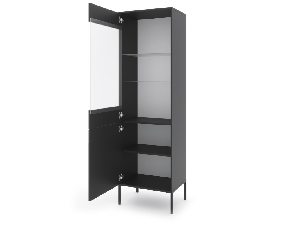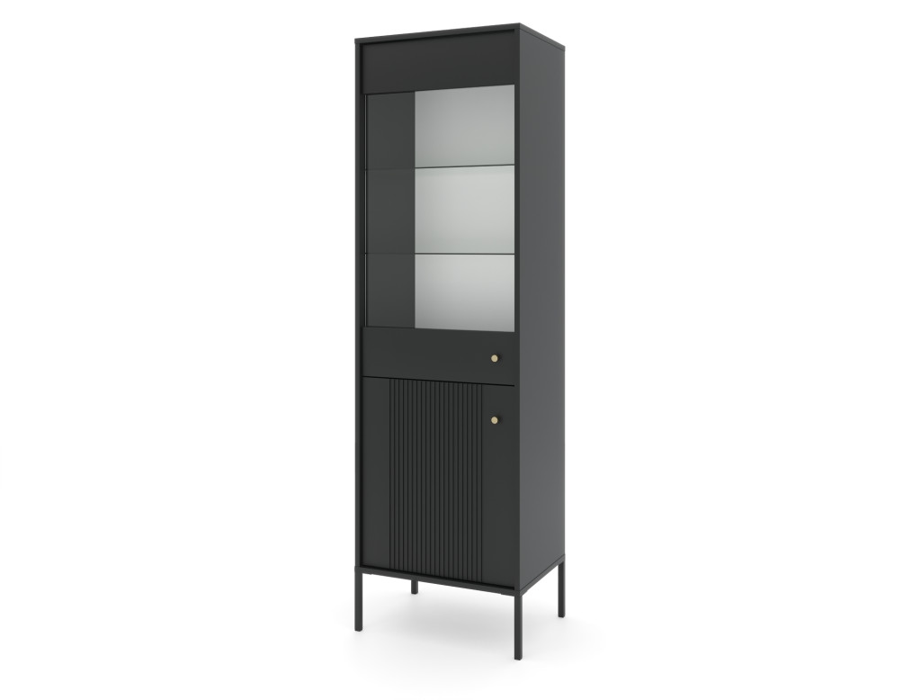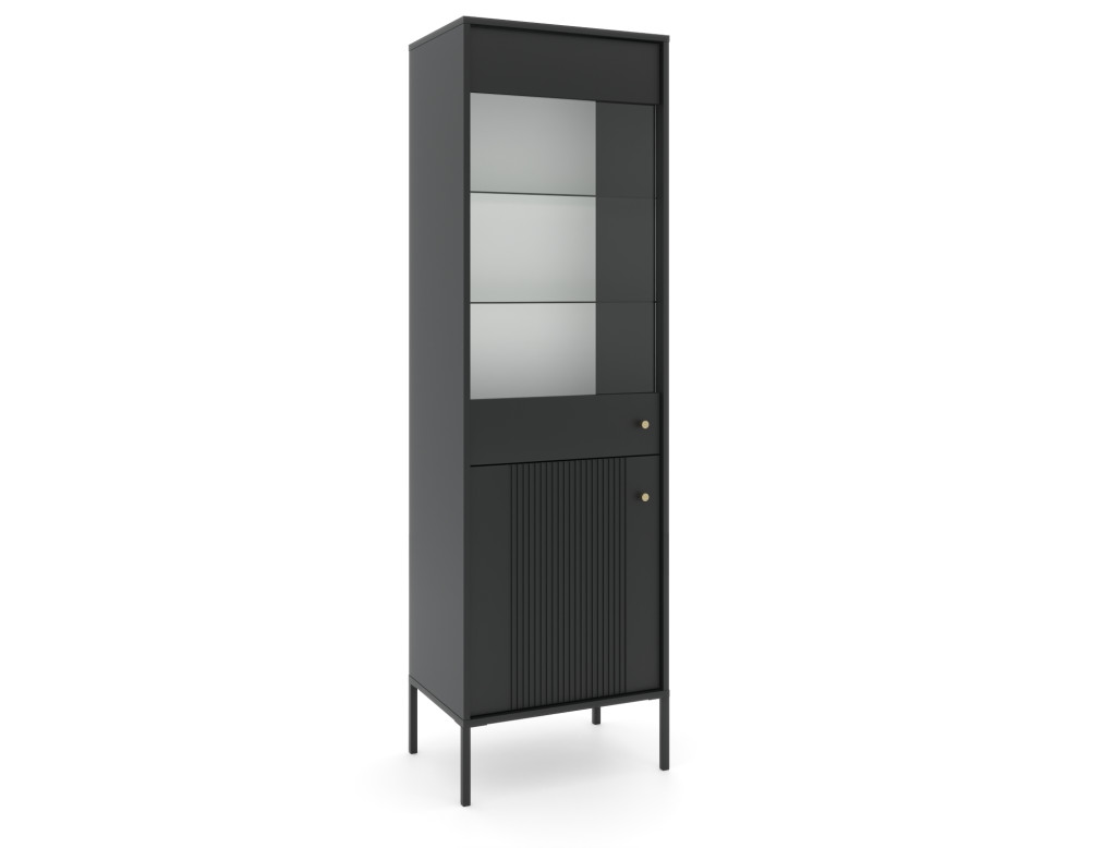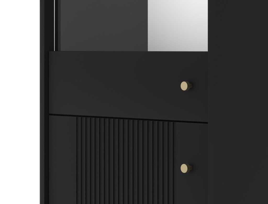 Vitrin szekrény 2 ajtós fekete színben arany fogantyúkkal – ISEO IS04