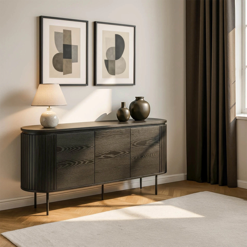 Komód 160 cm méretben, háromajtós kivitelben, fekete színben BECK