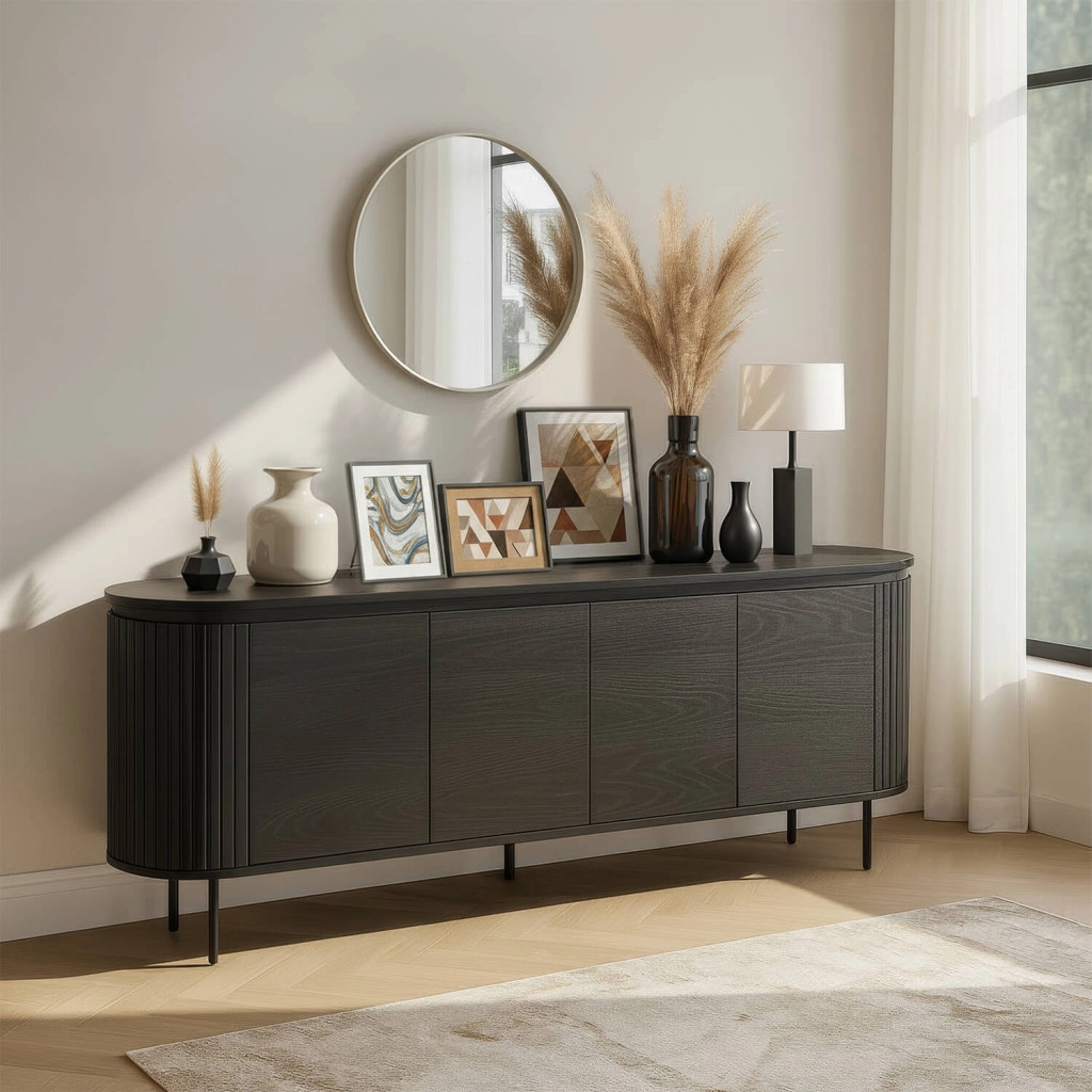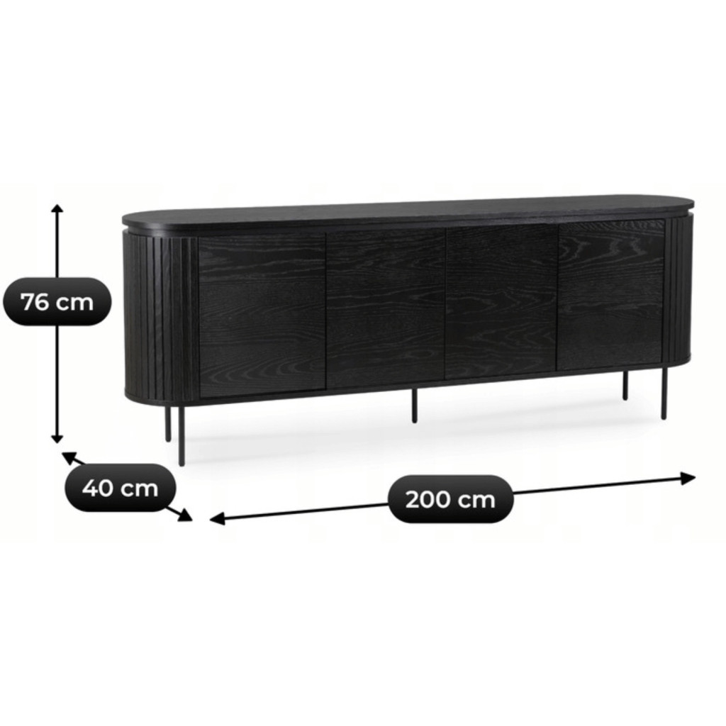 Komód 200 cm méretben, négyajtós kivitelben, fekete színben BECK