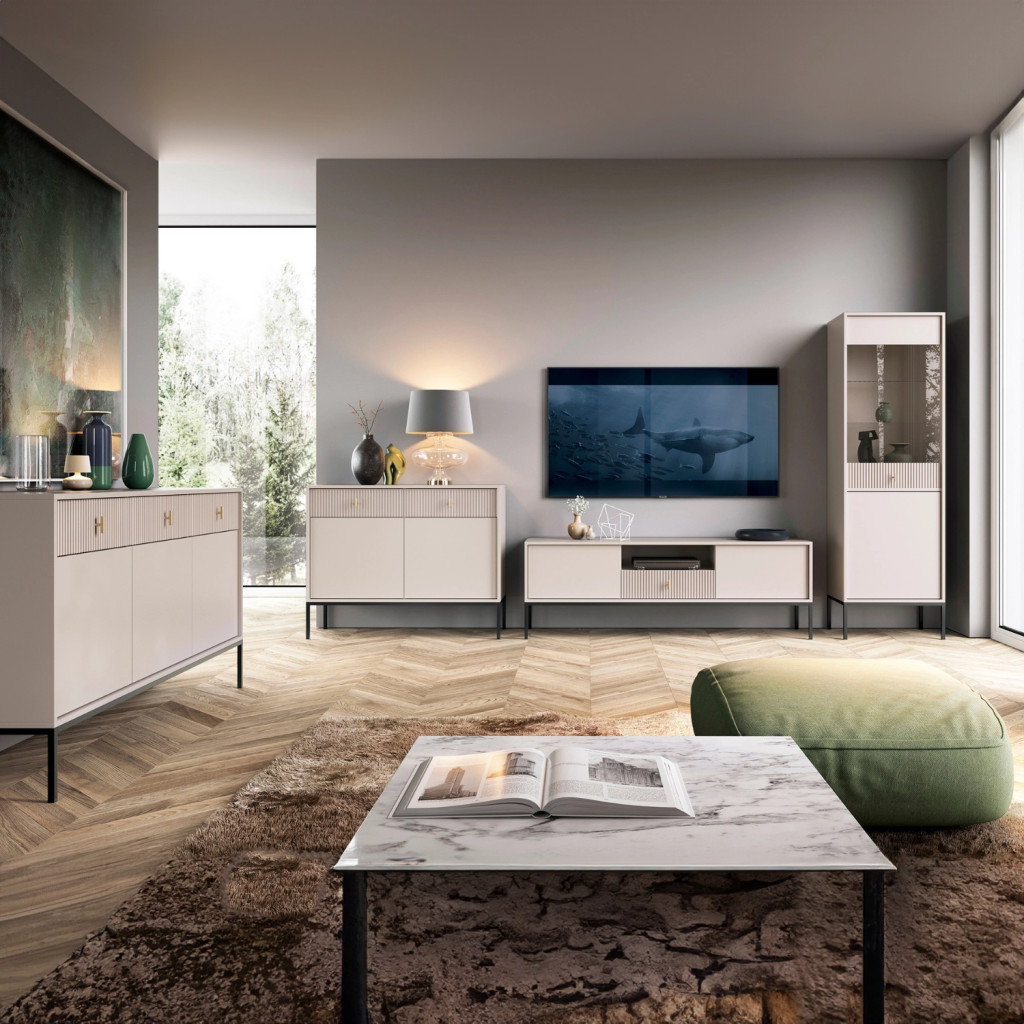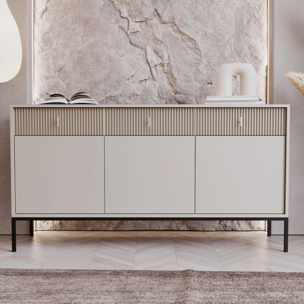 Komód 154 cm széles, bordázott fronttal kasmír színben – MARCOS