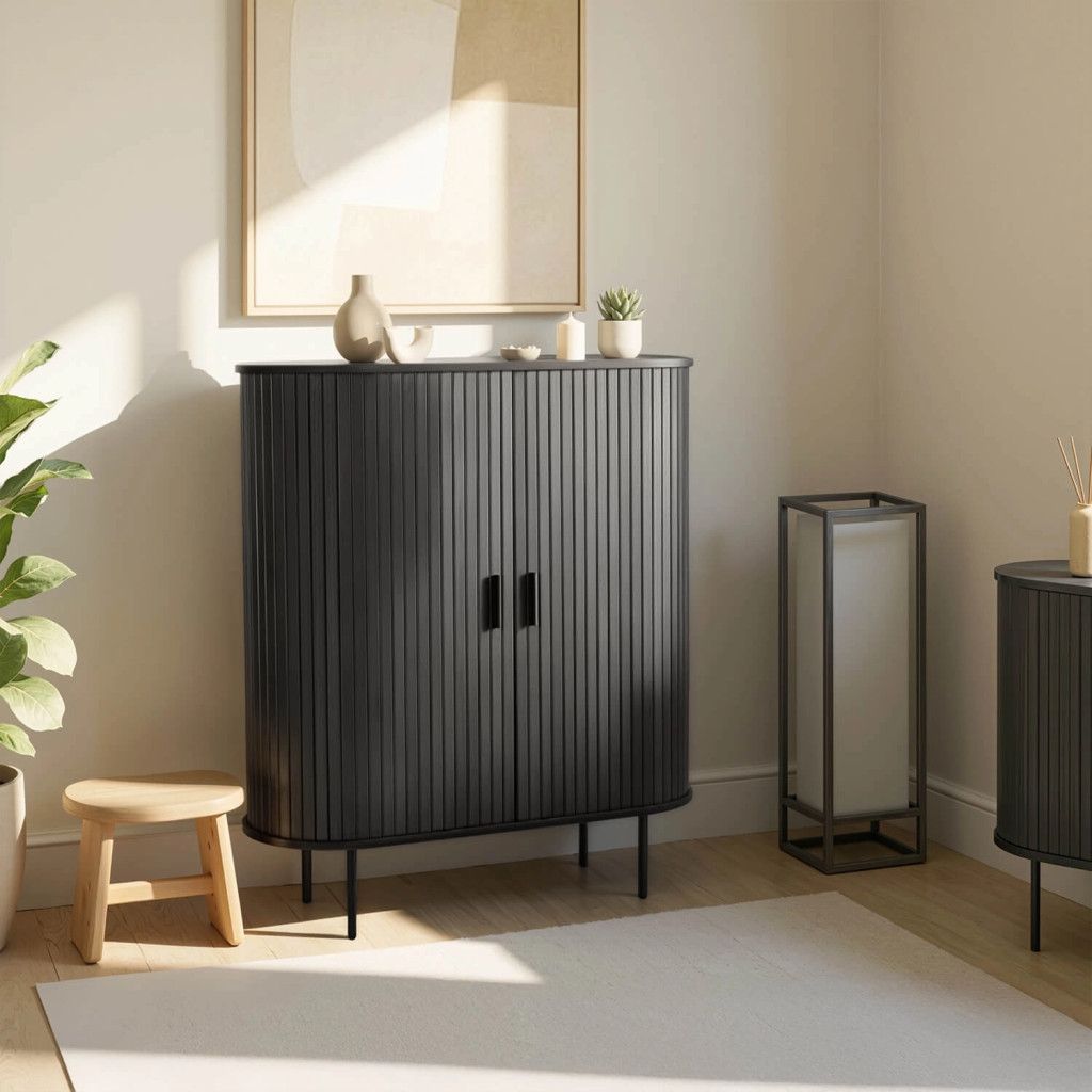 Kétajtós, tolóajtós komód 100 cm méretben, fekete színben TRISH