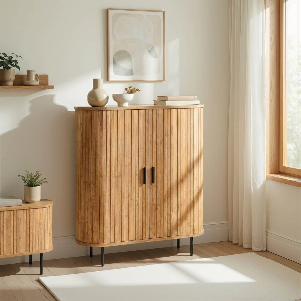 Kétajtós, tolóajtós komód 100 cm méretben, tölgy színben TRISH