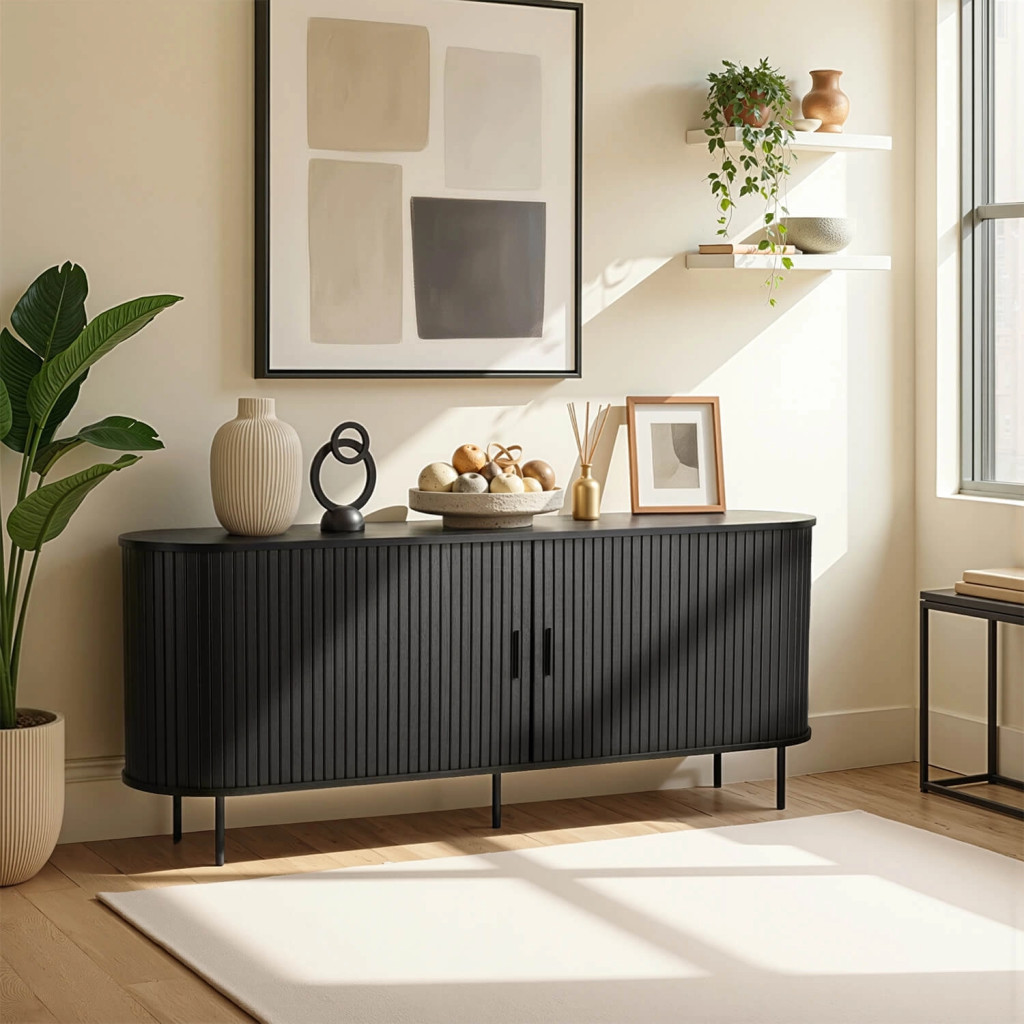 Kétajtós, tolóajtós komód 180 cm méretben, fekete színben TRISH