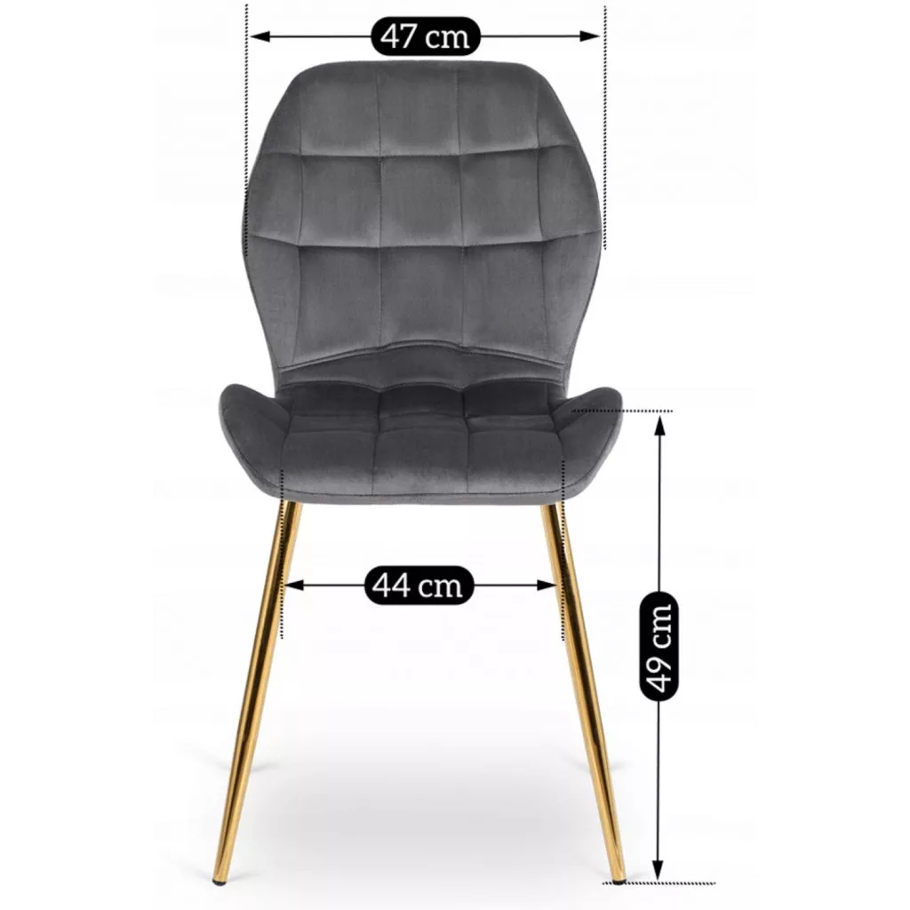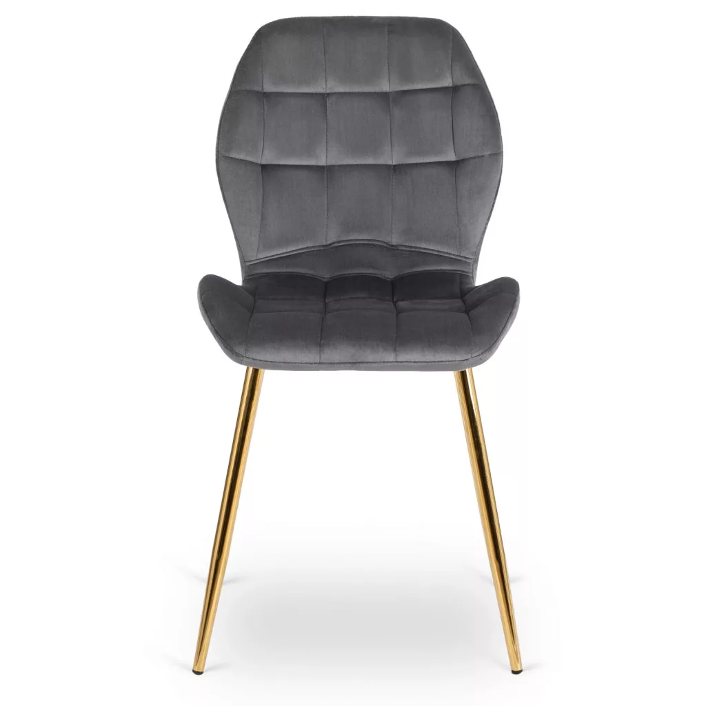 Krzesło LUCKY Szare ze Złotymi Nogami Welurowe