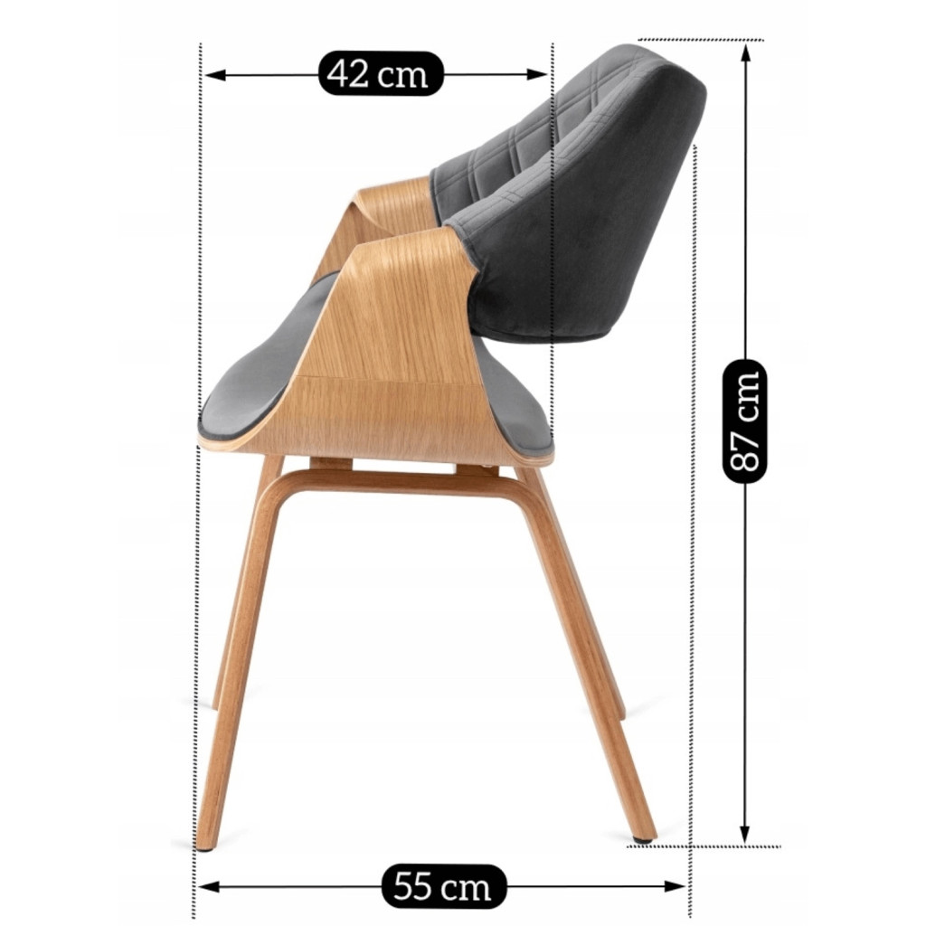 LUISE bársony szék szürke színben, hajlított rétegelt lemez vázzal