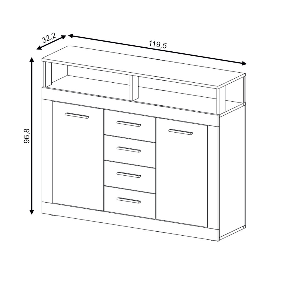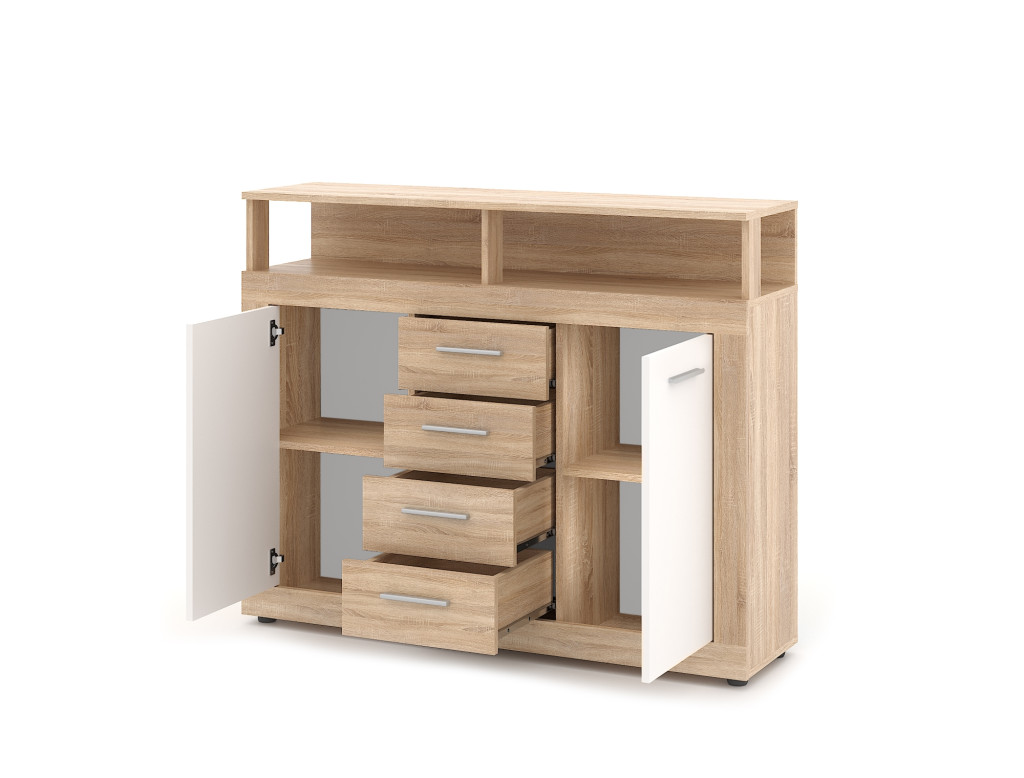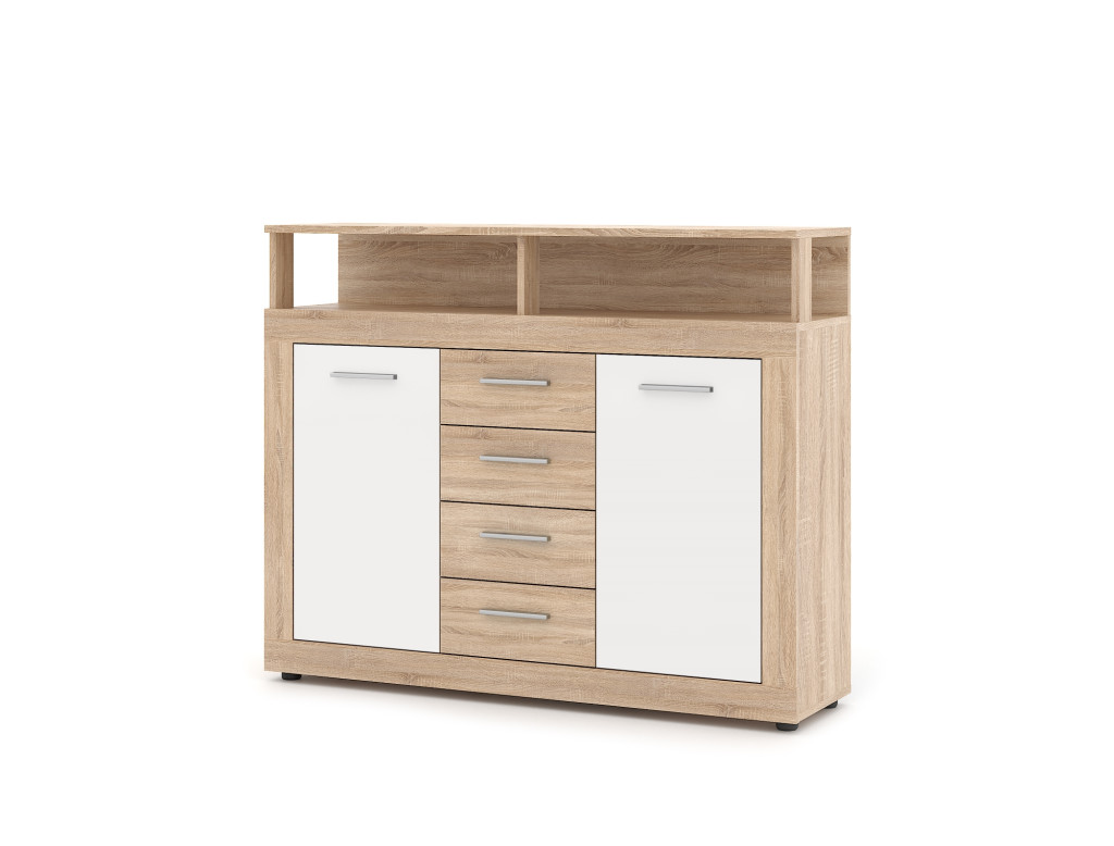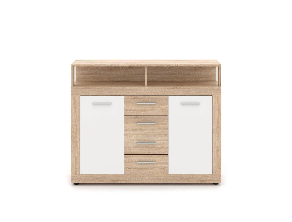Komód 2 ajtóval és 4 fiókkal Sonoma tölgy / fehér színkombinációban – LUNA MIDI B