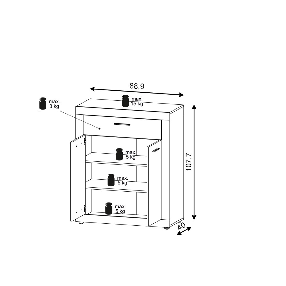 Komód 2 ajtóval és 1 fiókkal Old Style Light / Matera színkombinációban – LUNA2