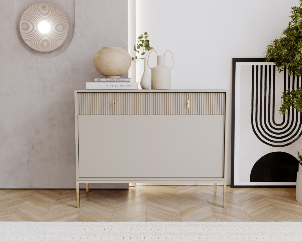 Komód 2 ajtóval és 2 fiókkal kasmír színben arany fogantyúkkal – MAGGIORE MA02