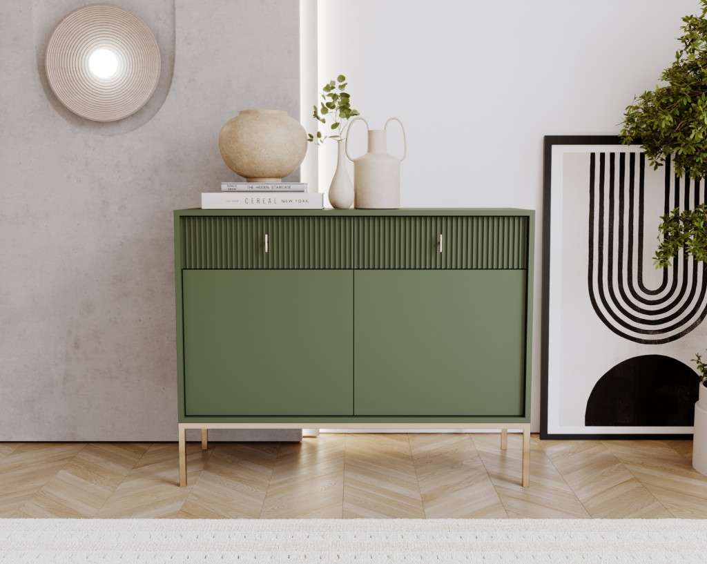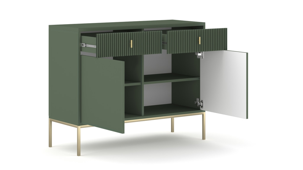 Komód zöld színben. 2 ajtó/2 fiók. MAGGIORE