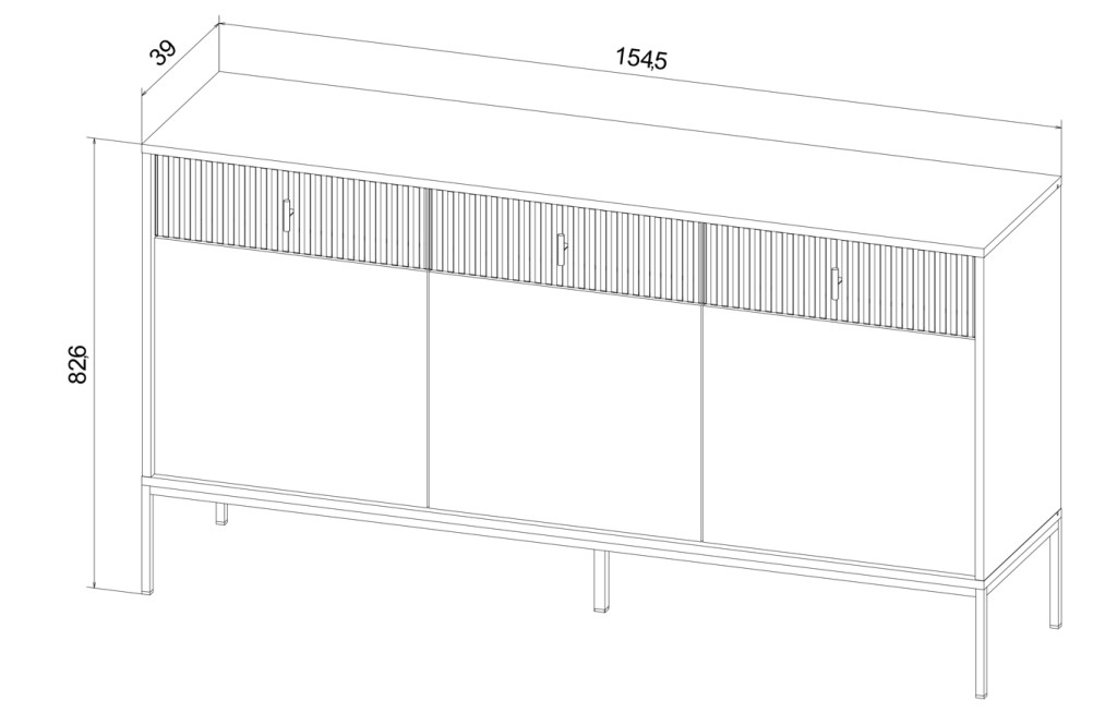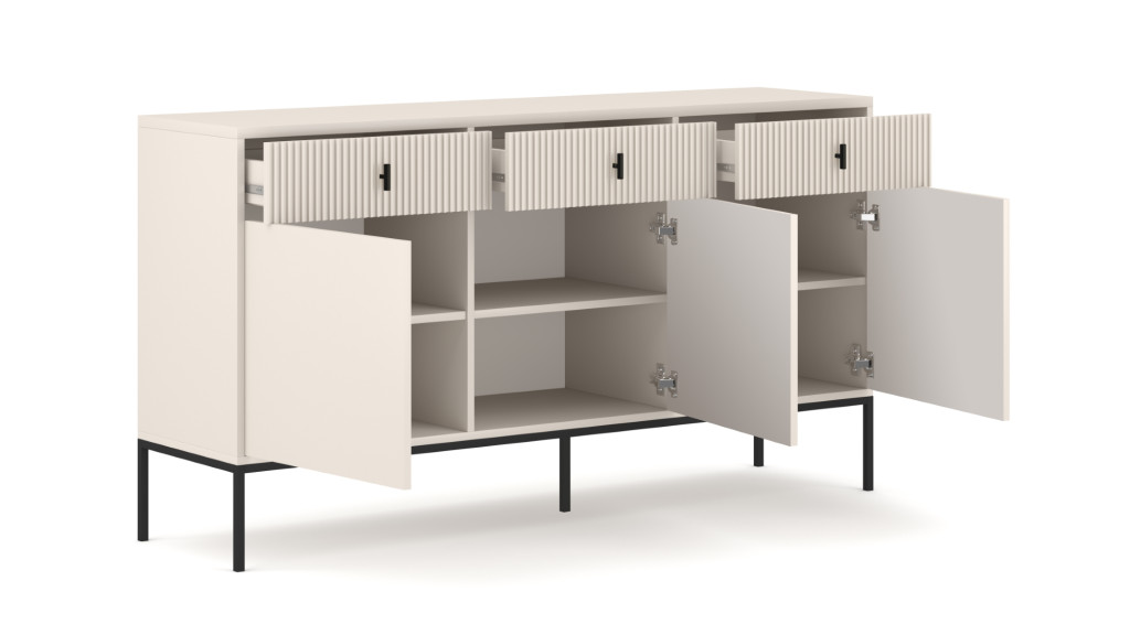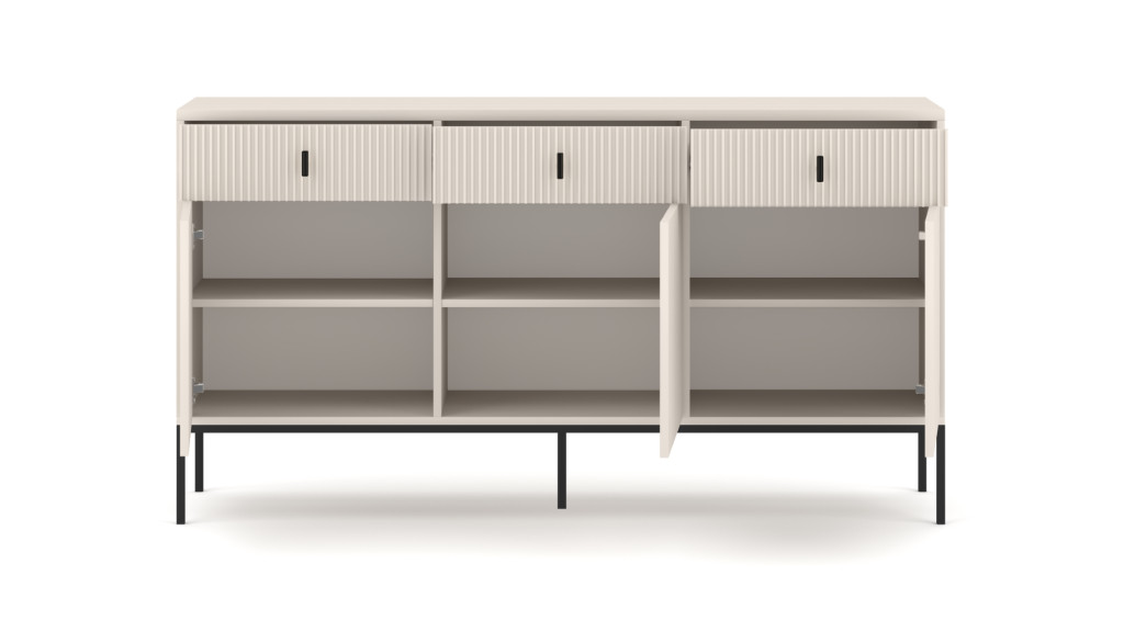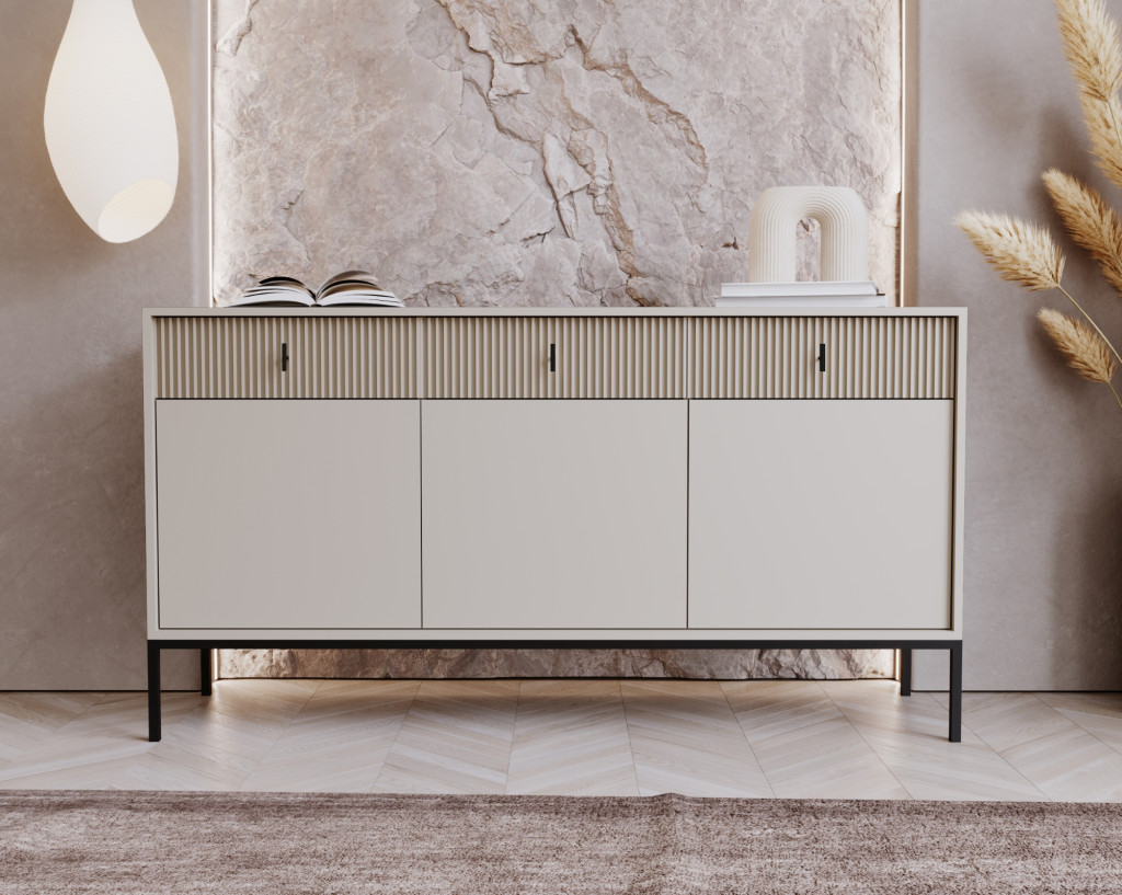 Komód 3 ajtóval és 3 fiókkal kasmír színben fekete elemekkel fekete fogantyúkkal – MAGGIORE MA03