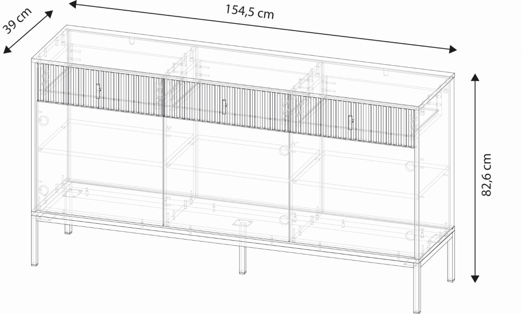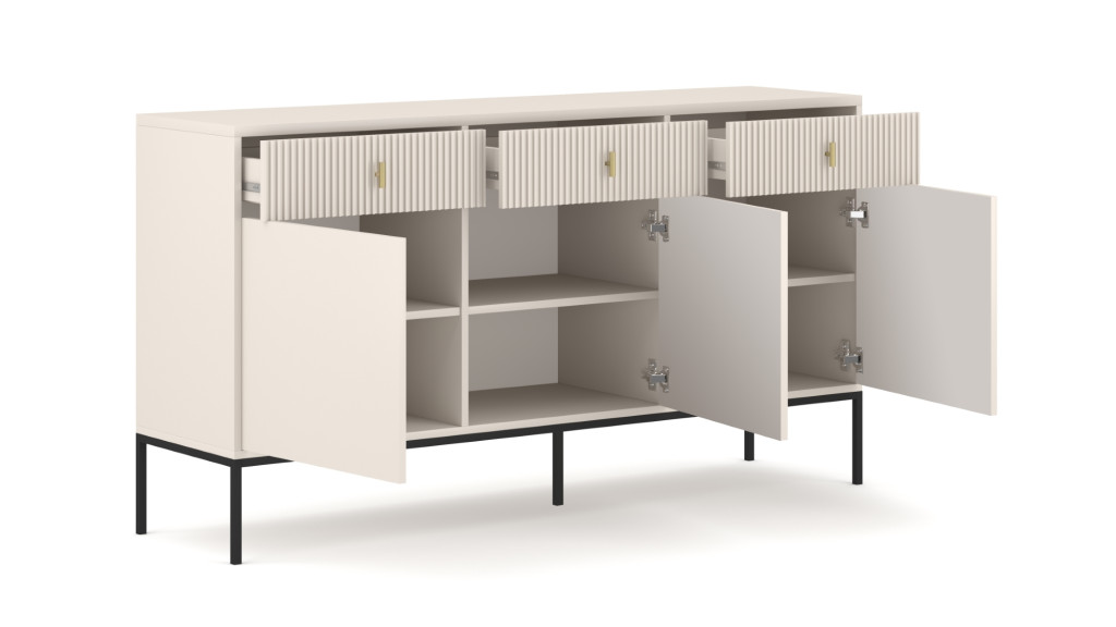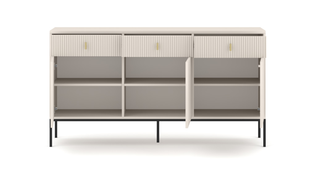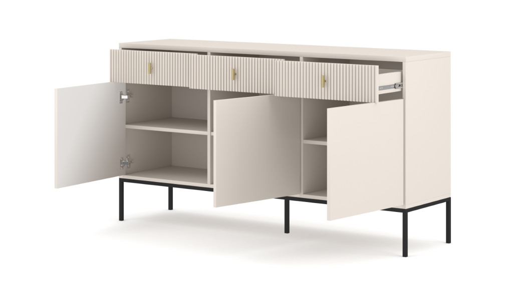 Komód 3 ajtóval és 3 fiókkal kasmír színben fekete elemekkel arany fogantyúkkal – MAGGIORE MA03
