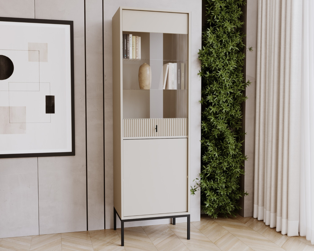 Komód 2 ajtós kasmír színben fekete elemekkel fekete fogantyúkkal – MAGGIORE MA04