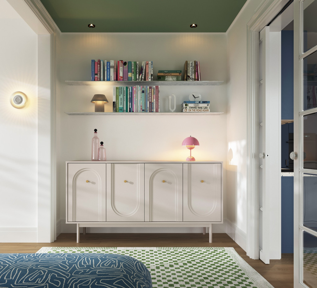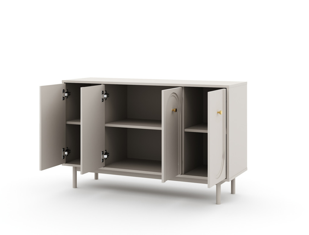Komód 4 ajtós kasmír színben arany fogantyúkkal – MAZOMA