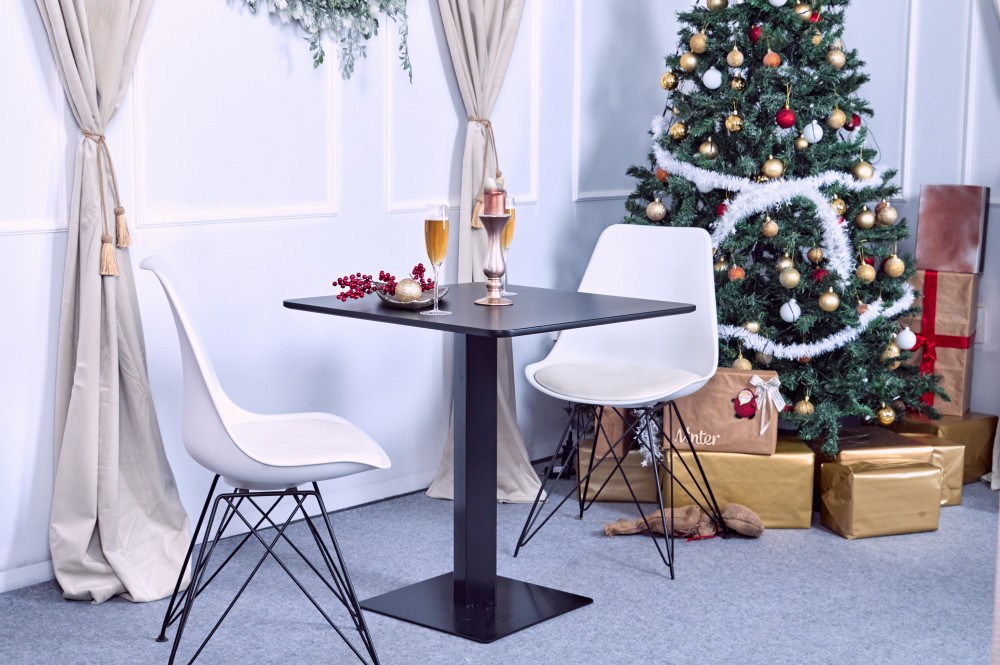 Szögletes Étkezőasztal, Bisztró asztal Fehér Színben Palermo - 80x80cm Mdf-Fém
