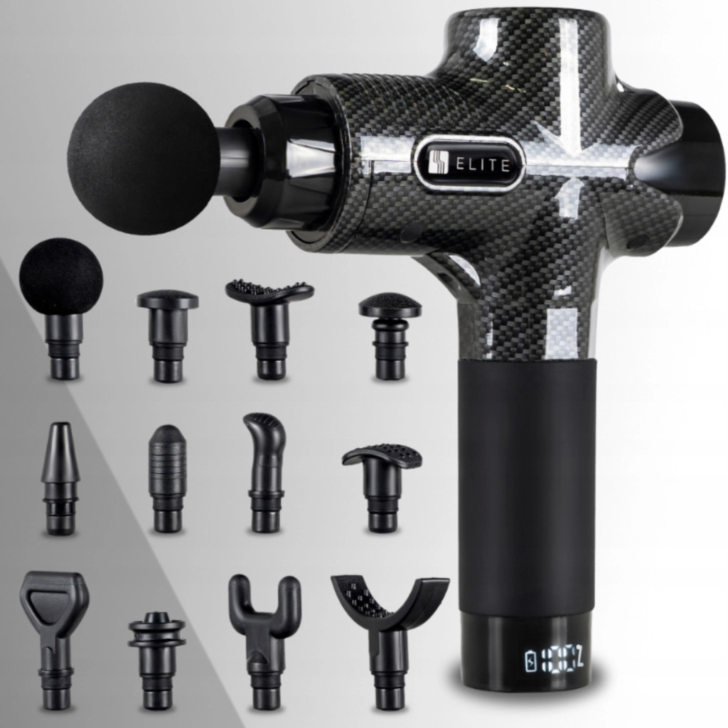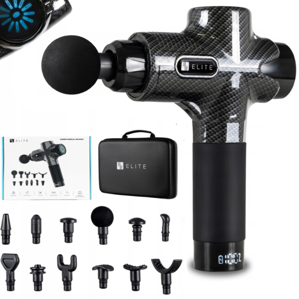 Masszázspisztoly 12 cserélhető fejjel fekete színben – ME-MG06