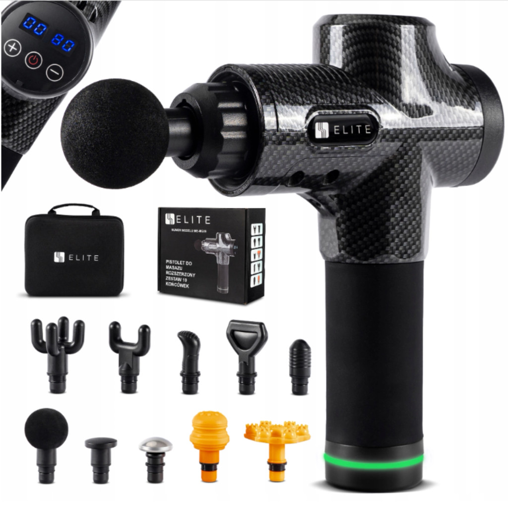 Masszázspisztoly 10 cserélhető fejjel fekete színben – ME-MG09