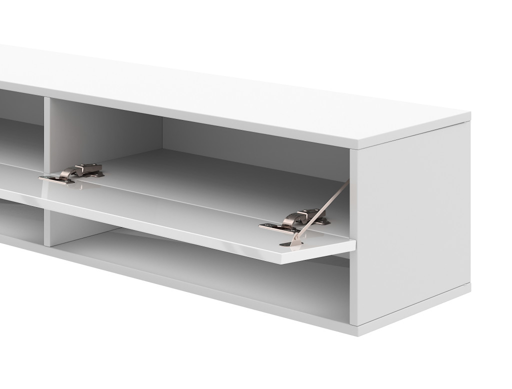 TV szekrény 140 cm fehér matt / fehér magasfény színkombinációban – DERBY