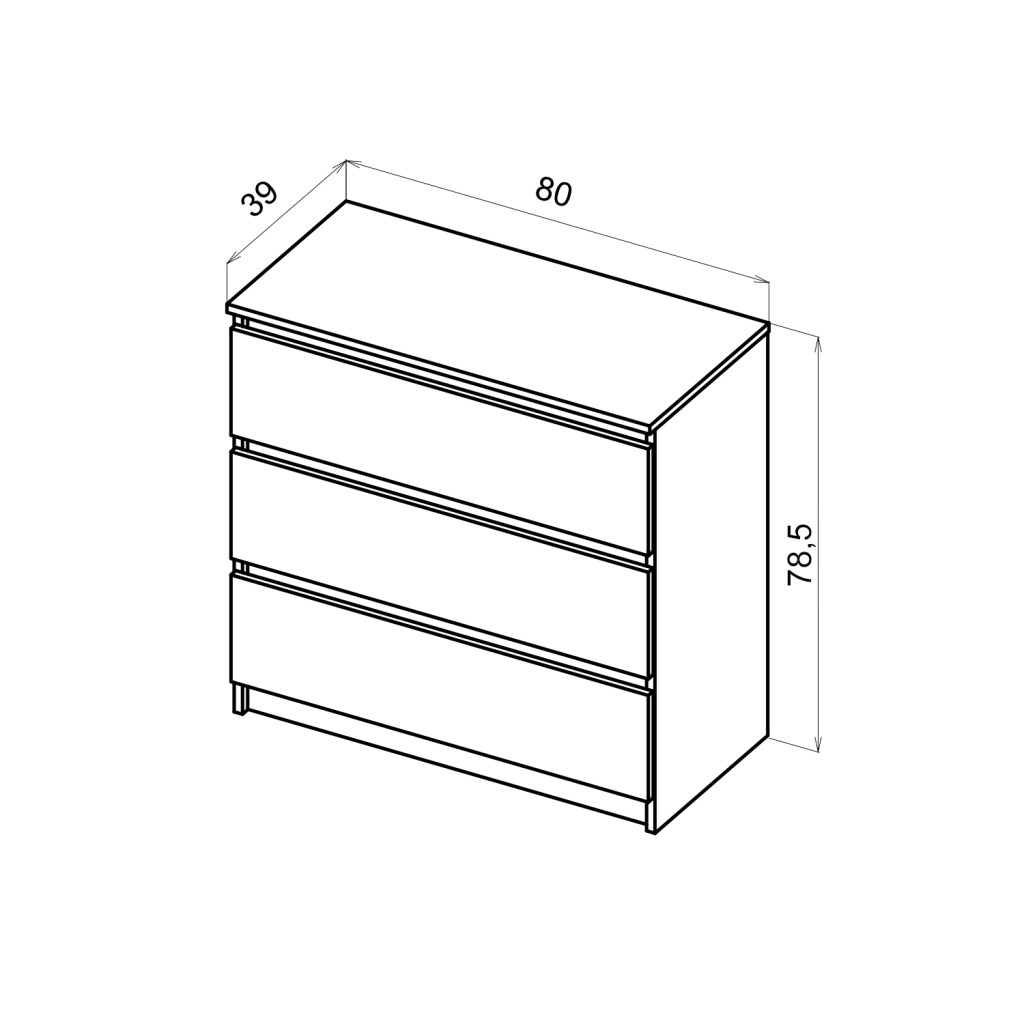 SIMPLE komód 80 cm 3 fiók kasmír