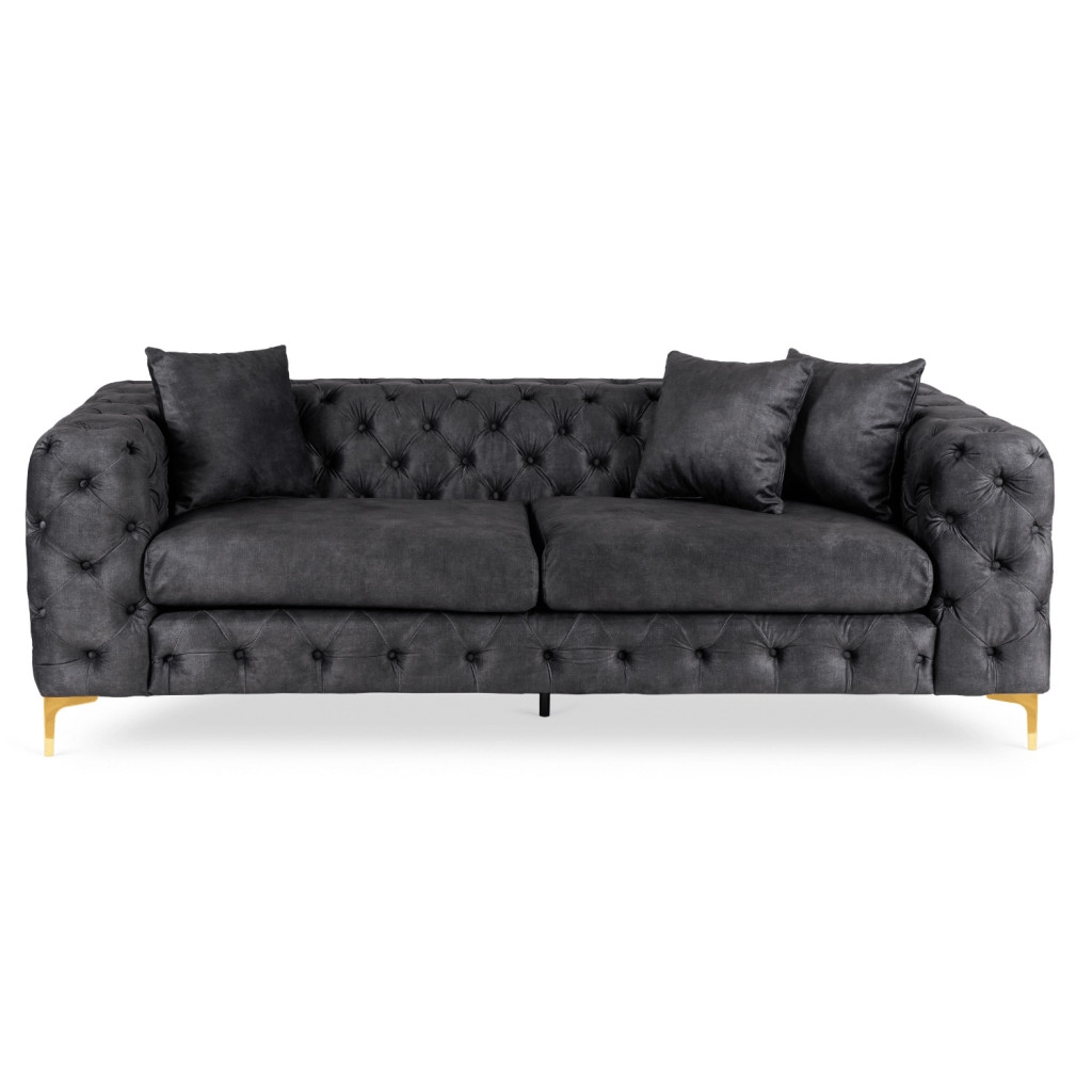 Háromszemélyes kanapé fekete színben, bársony kárpittal SORRENTO 3S