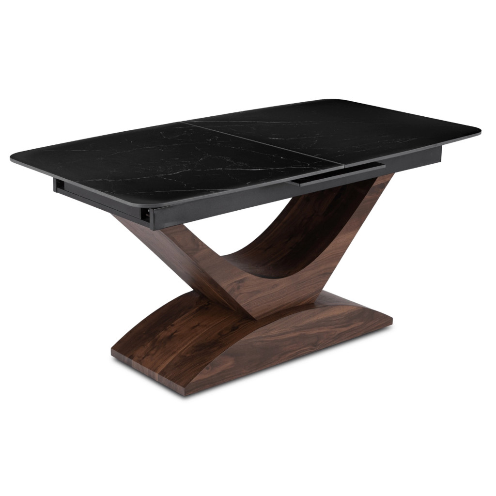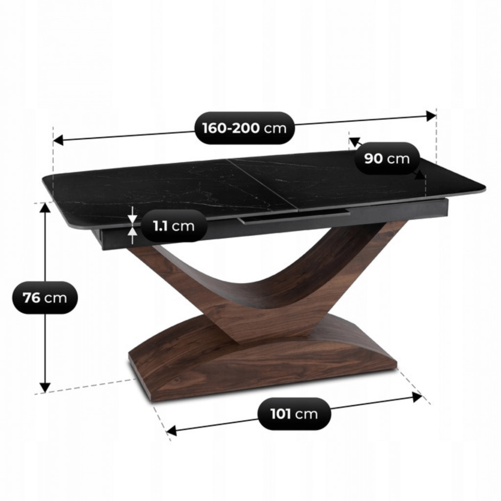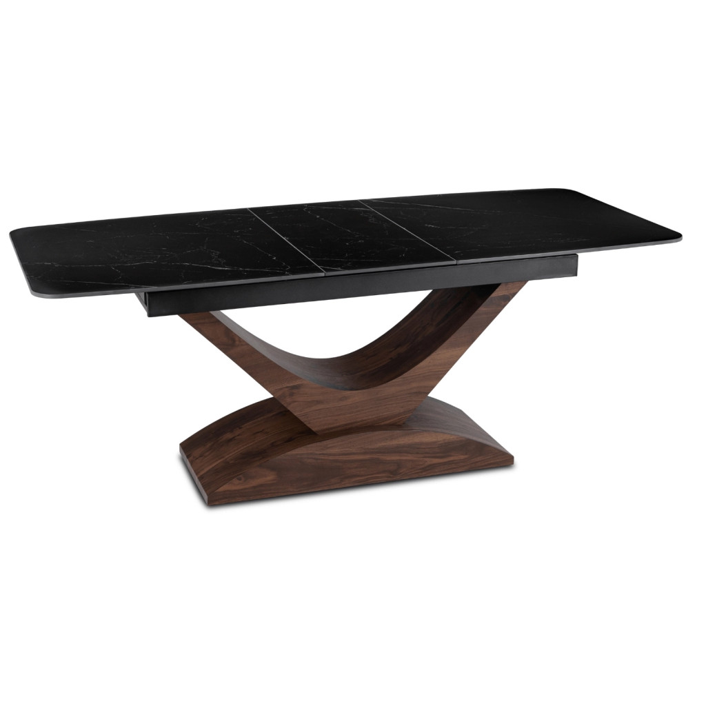 Kihúzható kerámia étkezőasztal 160–200 cm méretben, fekete márvány/dió színben ALICANTE
