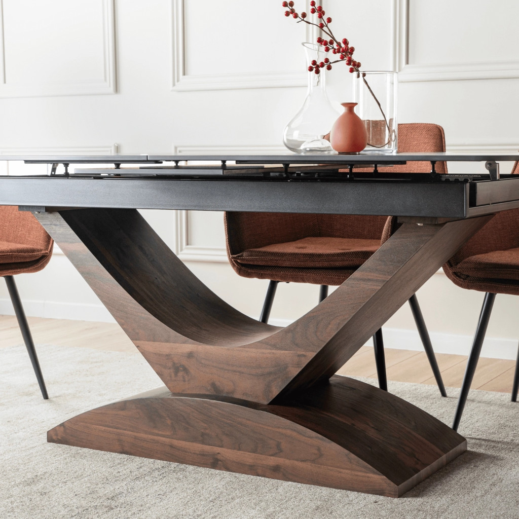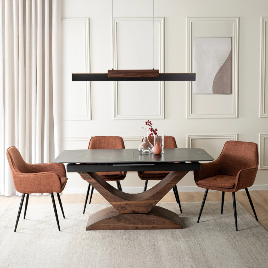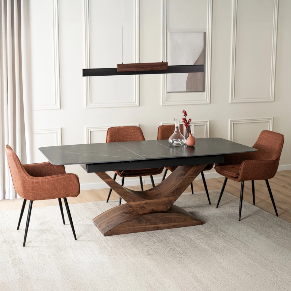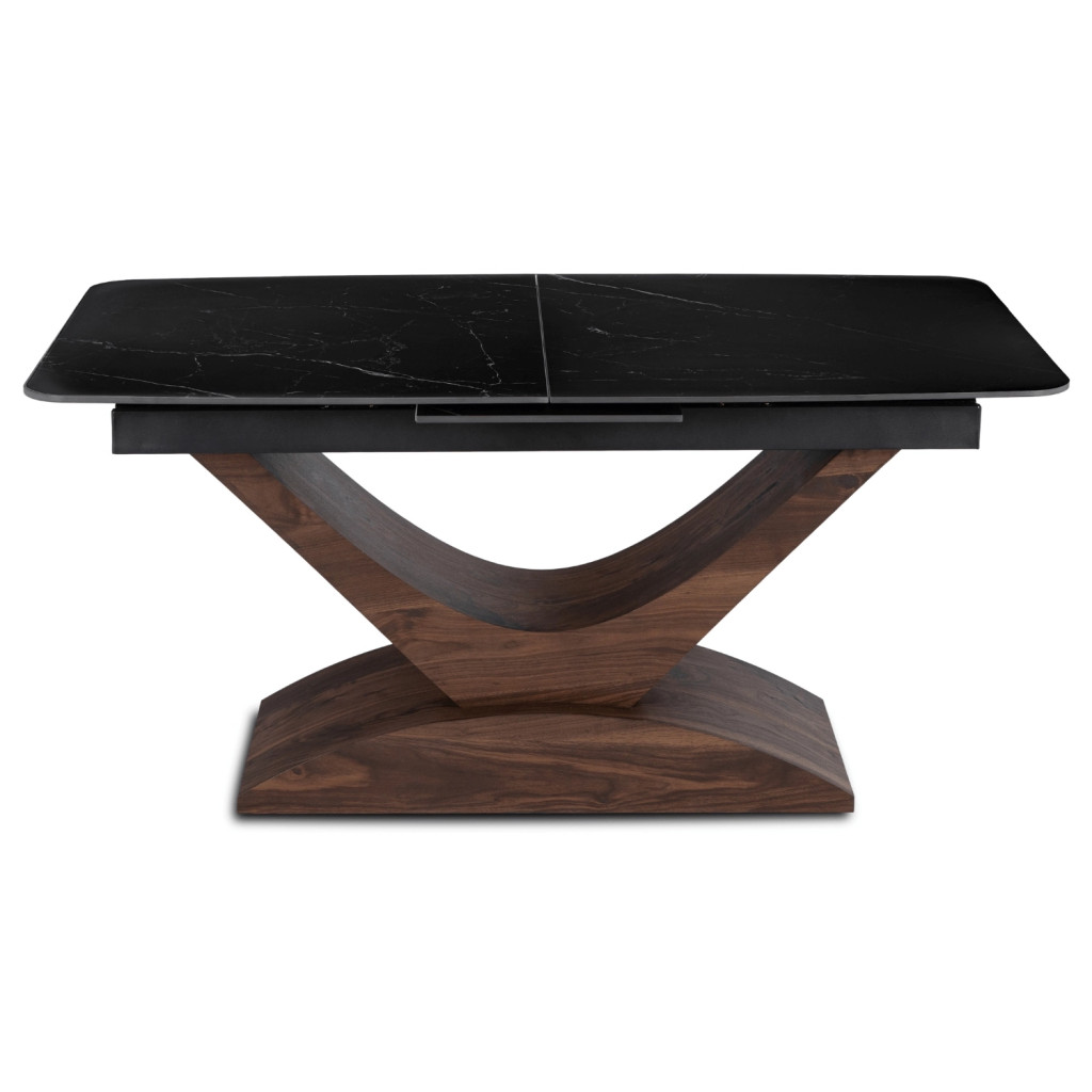 Kihúzható kerámia étkezőasztal 160–200 cm méretben, fekete márvány/dió színben ALICANTE
