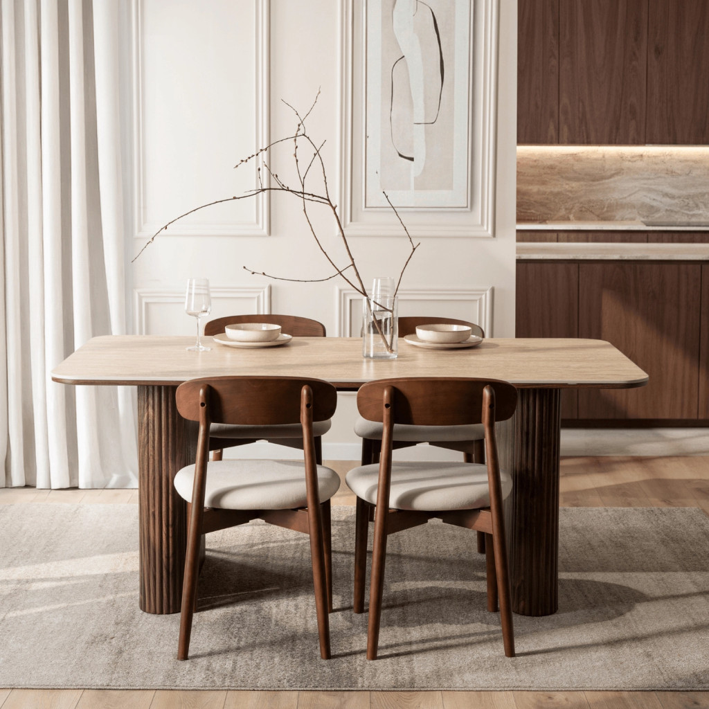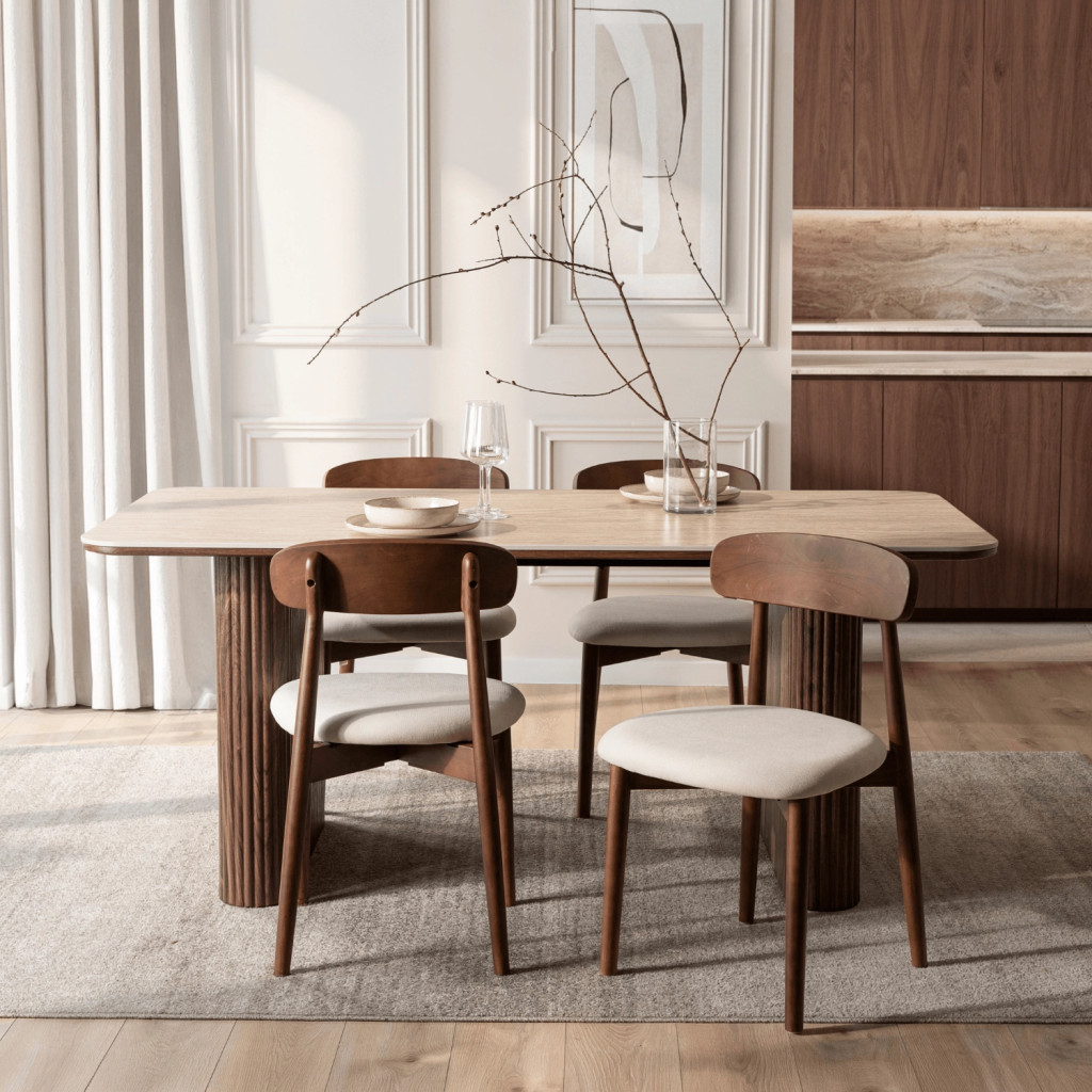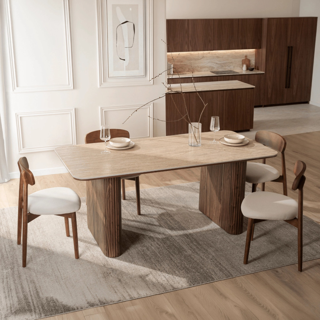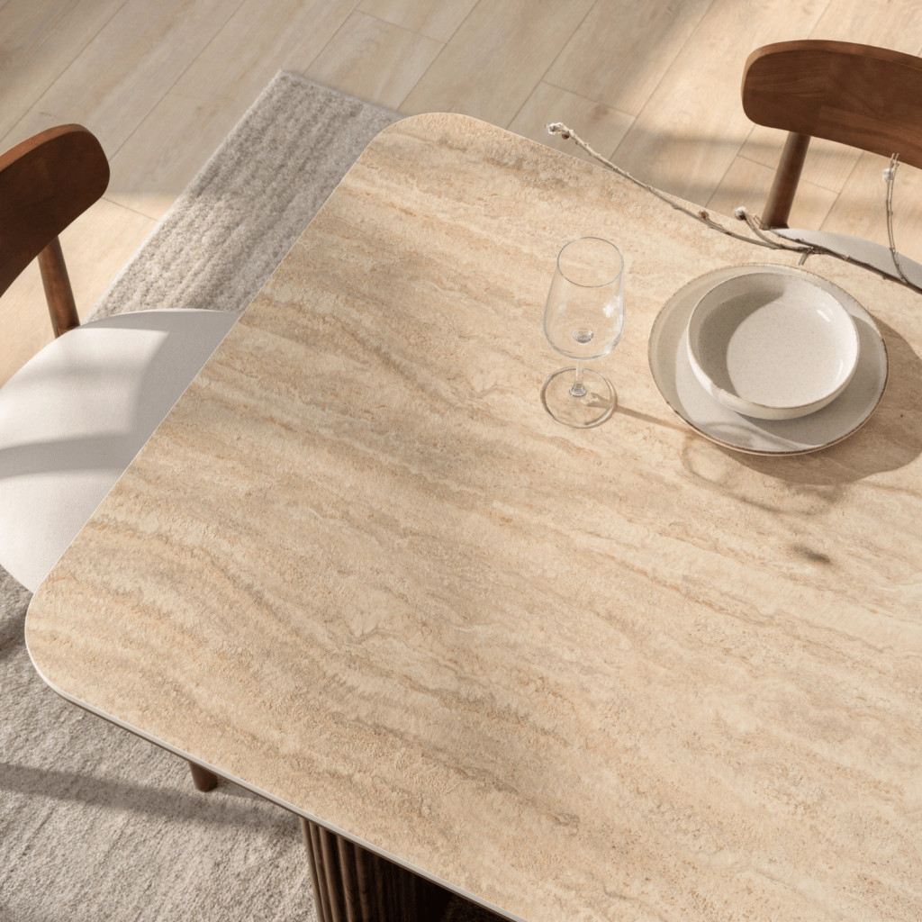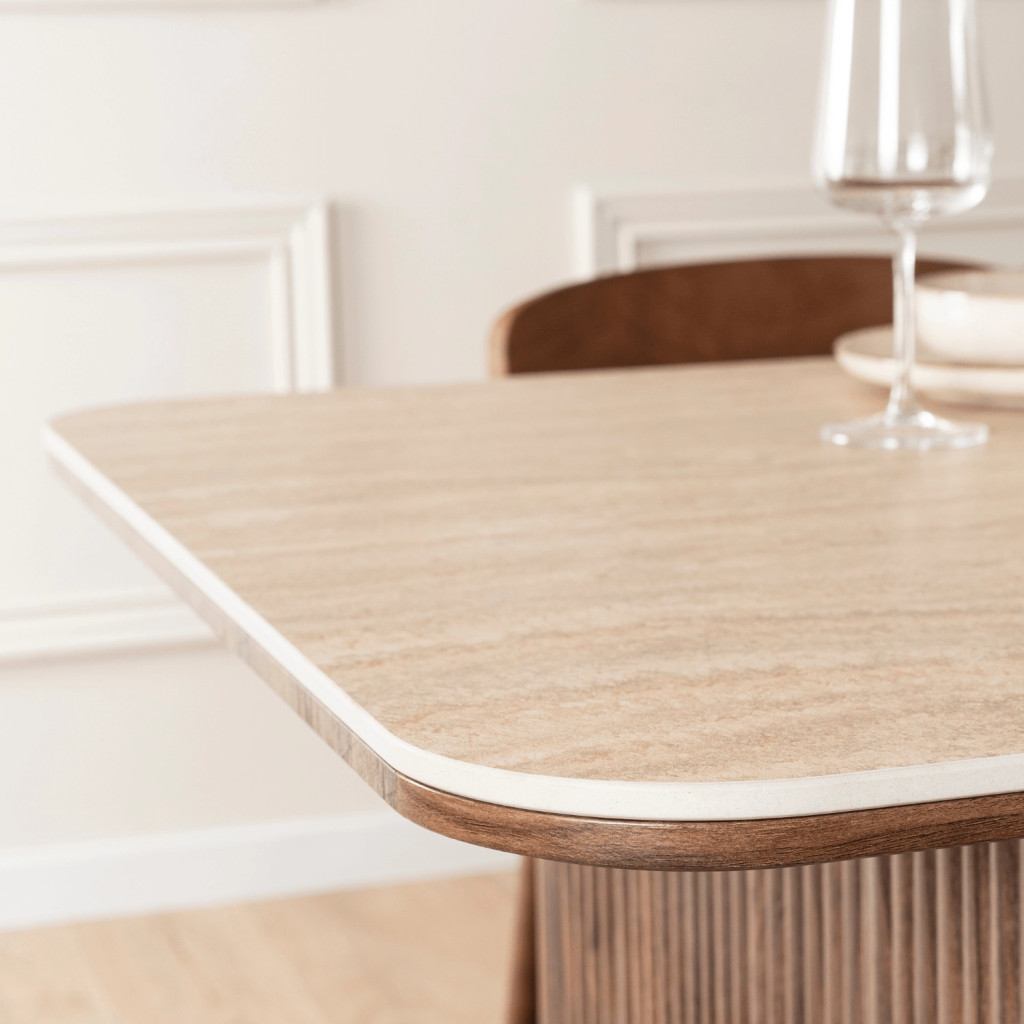 Téglalap alakú étkezőasztal 180 cm méretben, travertin/dió színben ARAMIS