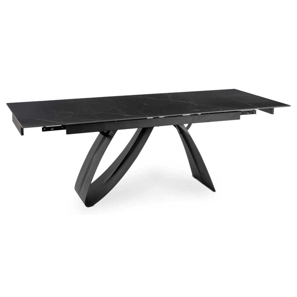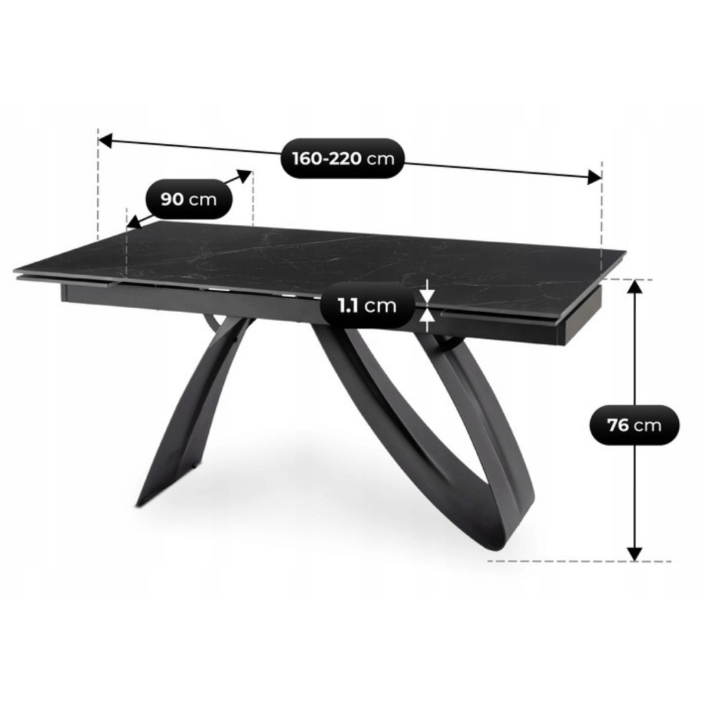 Kihúzható kerámia étkezőasztal 160–220 cm méretben, fekete márvány/fekete színben DEVON