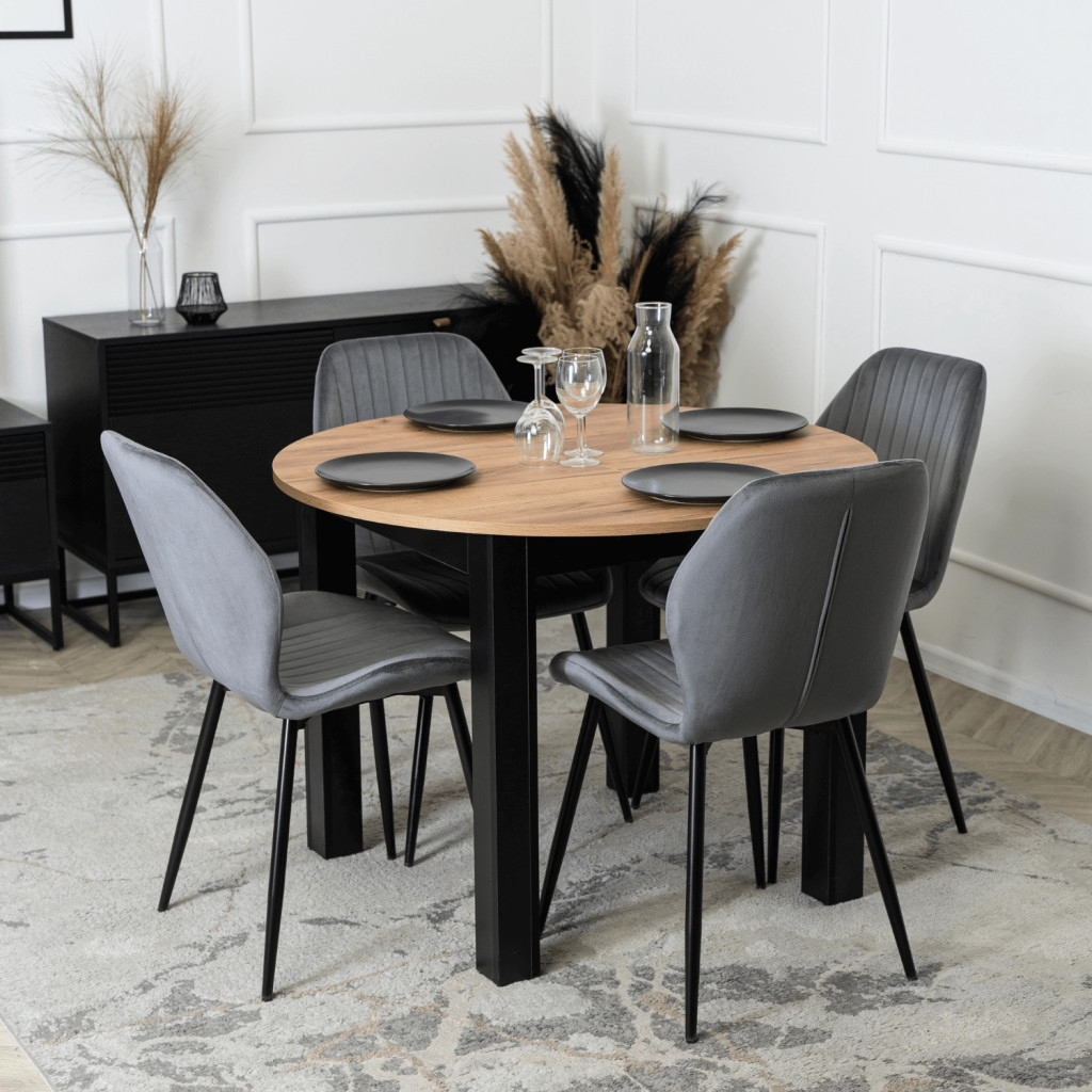 Kihúzható étkezőasztal 102–142 cm méretben, craft tölgy/fekete színben HARRY