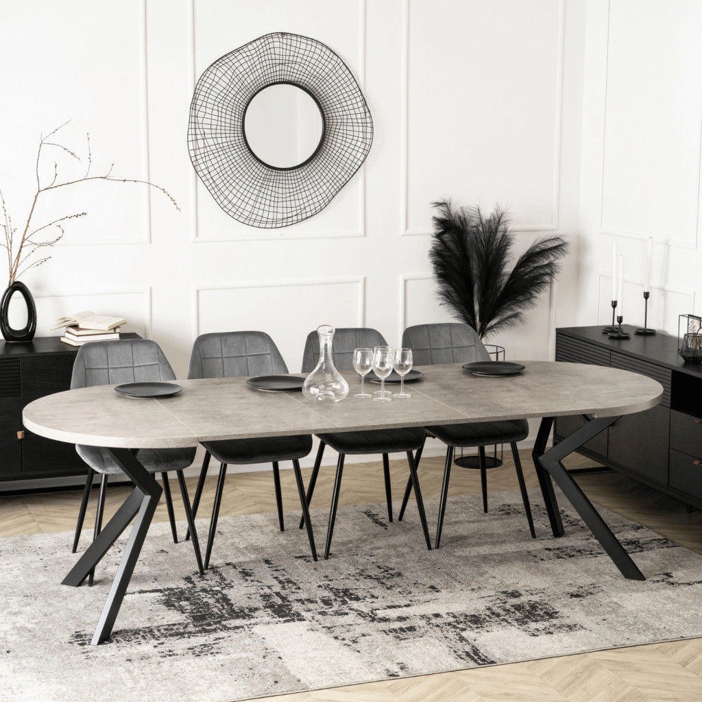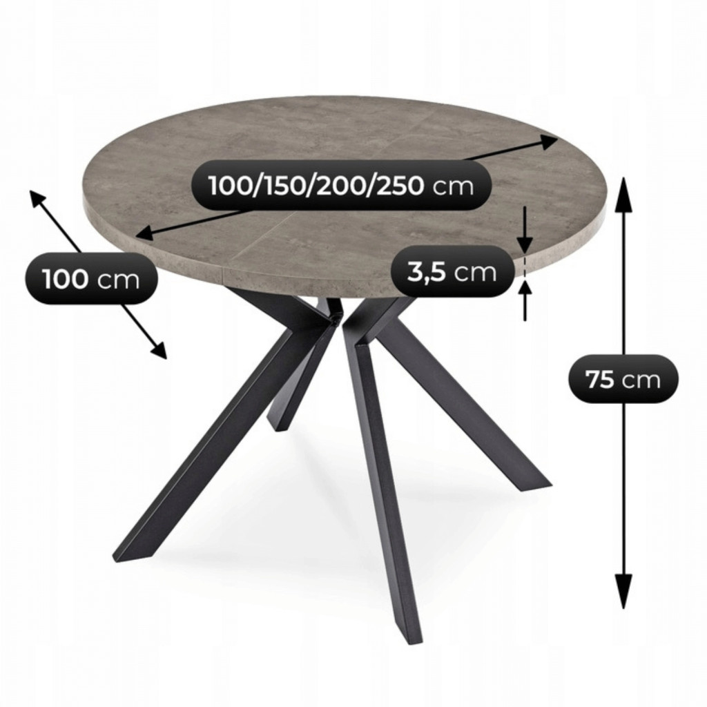 Kihúzható étkezőasztal 100–250 cm méretben, beton/fekete színben LUKAS
