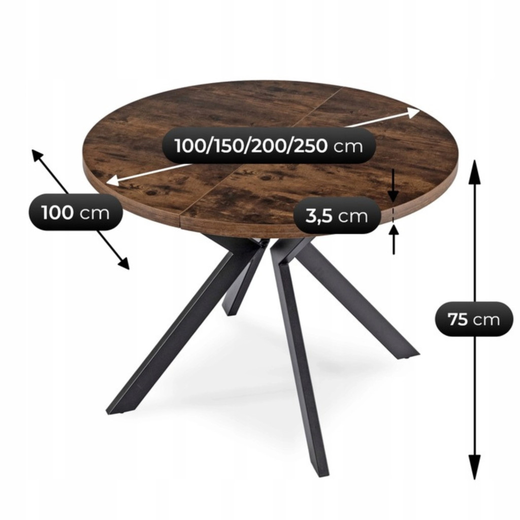 Kihúzható étkezőasztal 100–250 cm méretben, rusztikus tölgy/fekete színben LUKAS