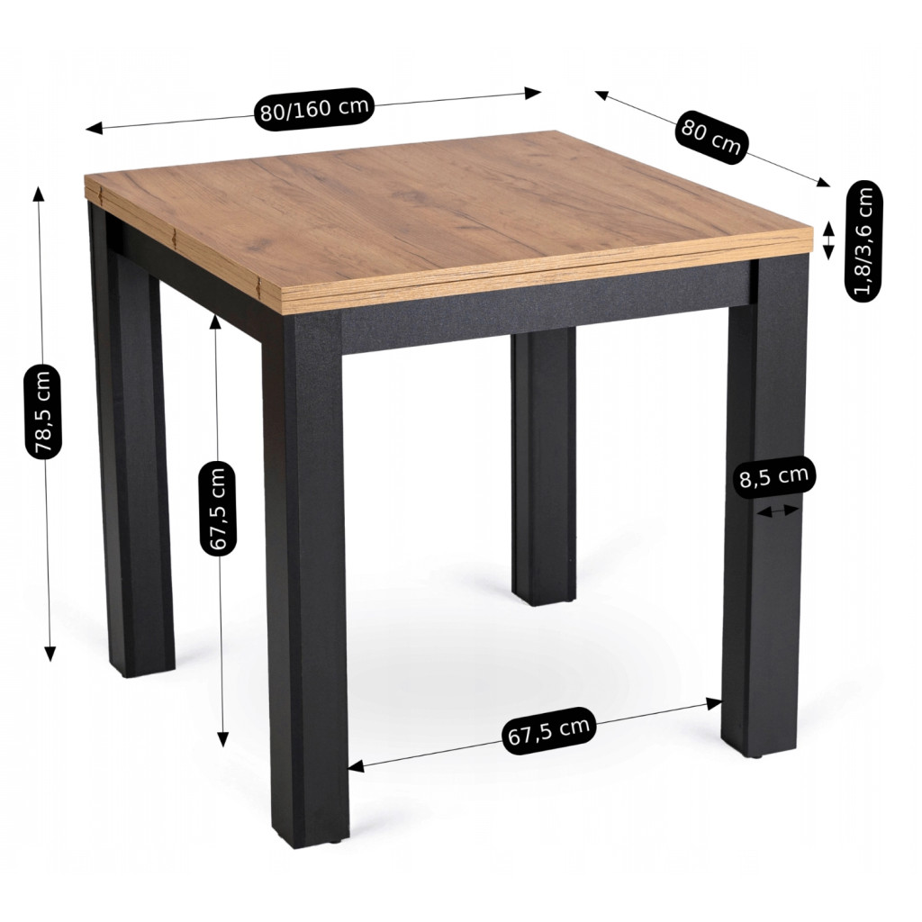 Kihúzható étkezőasztal 80–160 cm méretben, craft tölgy/fekete színben MAX