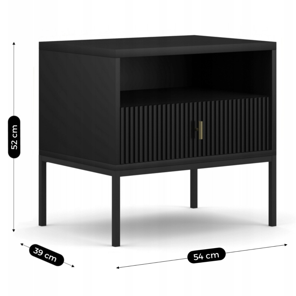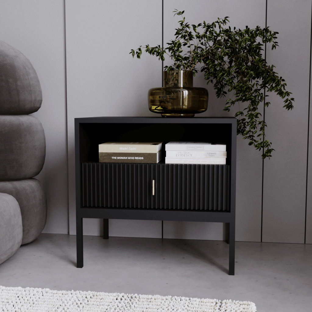Éjjeliszekrény bordázott kivitelben, fekete színben MARCOS