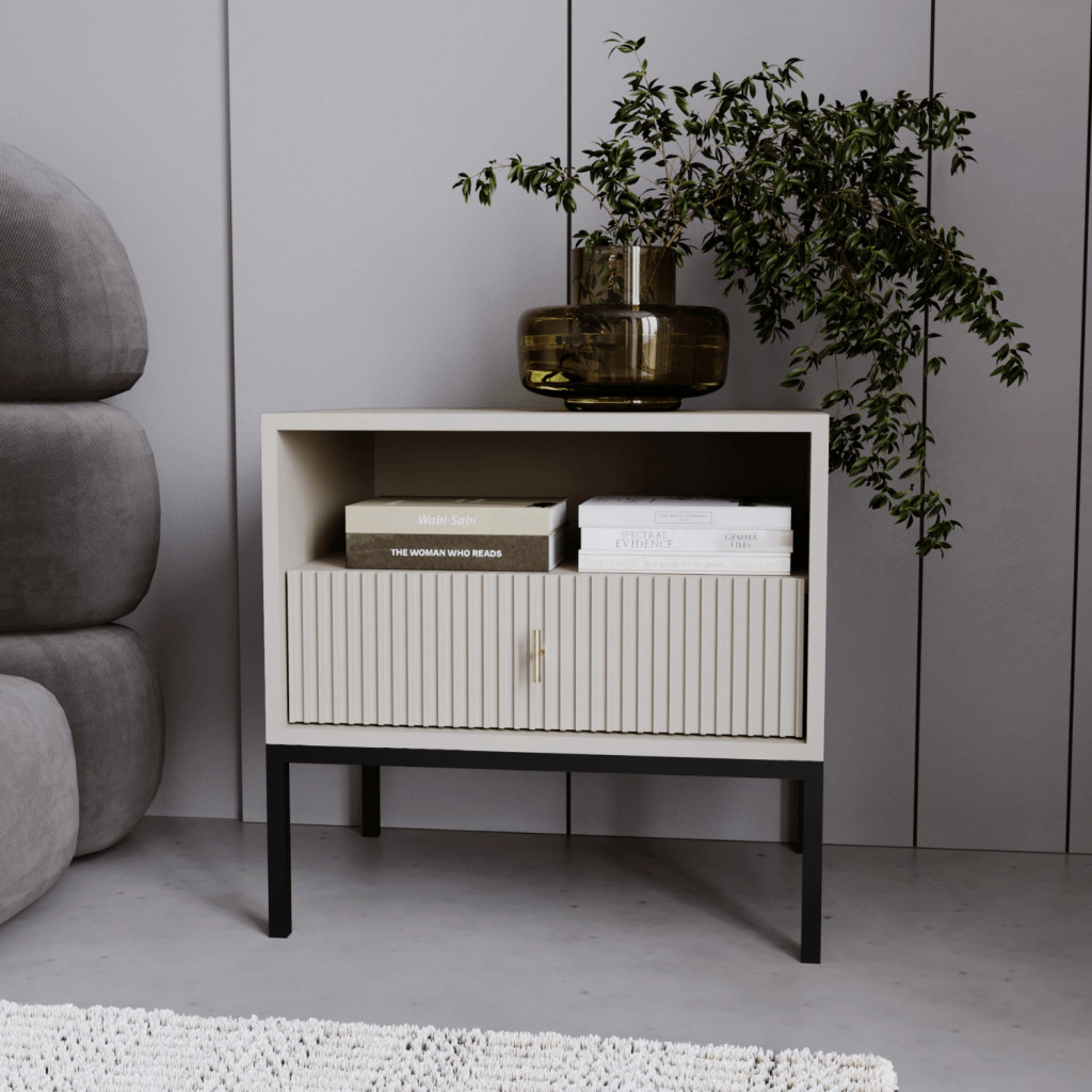 Éjjeliszekrény bordázott kivitelben, kasmír színben MARCOS
