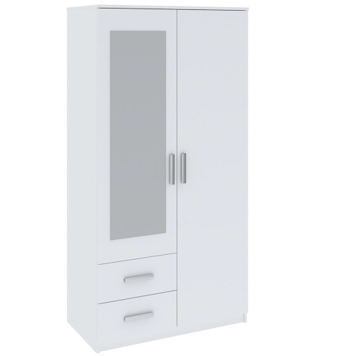 Kétajtós Tükrös Gardróbszekrény Fehér Színben. TAMINA 100 cm.