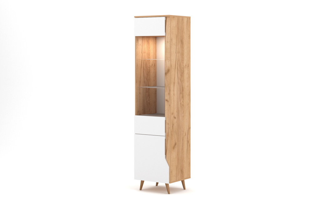 Vitrin szekrény 2 ajtós Craft arany / fehér színkombinációban LED világítással – TUE