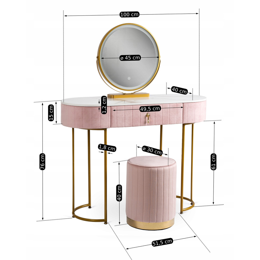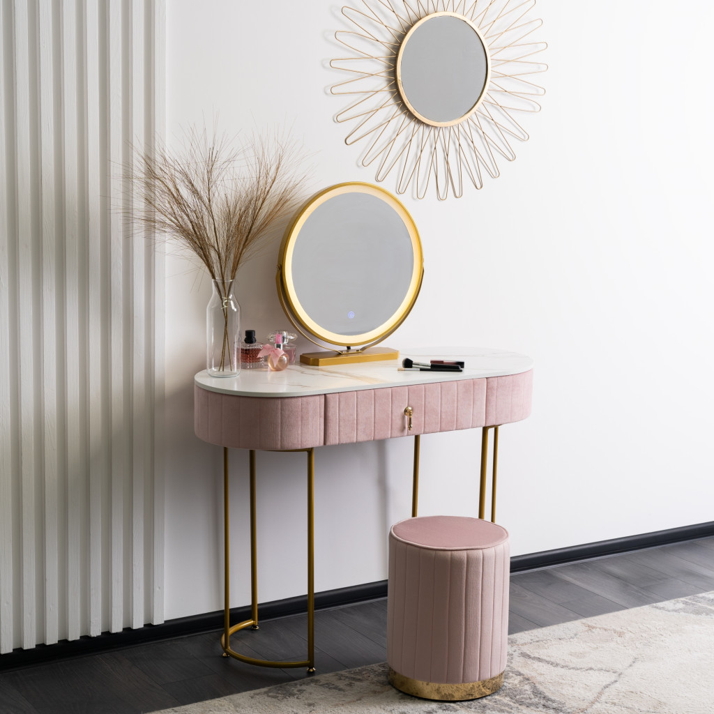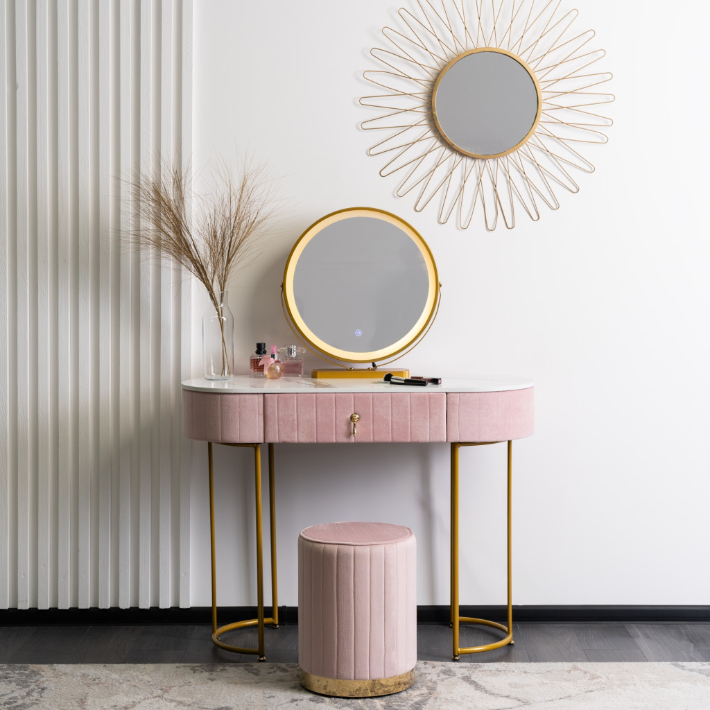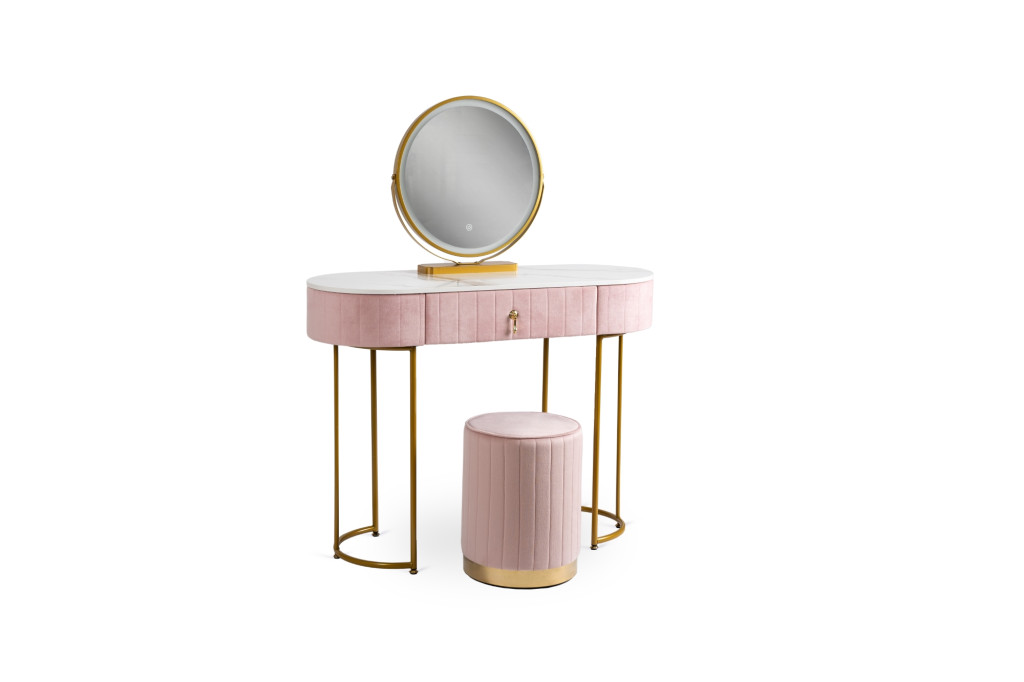 Fésülködőasztal rózsaszín / arany színkombinációban – ASHLEY
