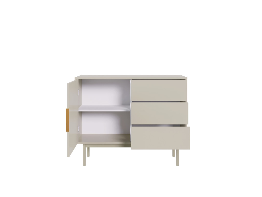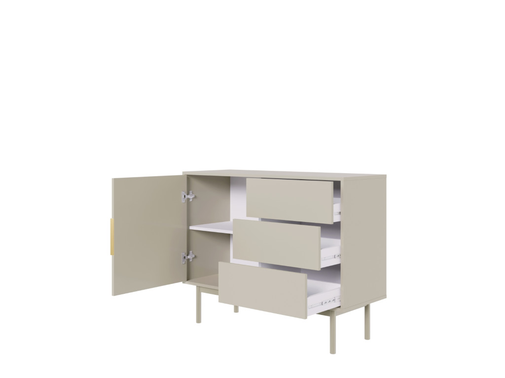 Komód 104 cm 1 ajtóval és 3 fiókkal kasmír színben arany fogantyúkkal – VIVA VI03