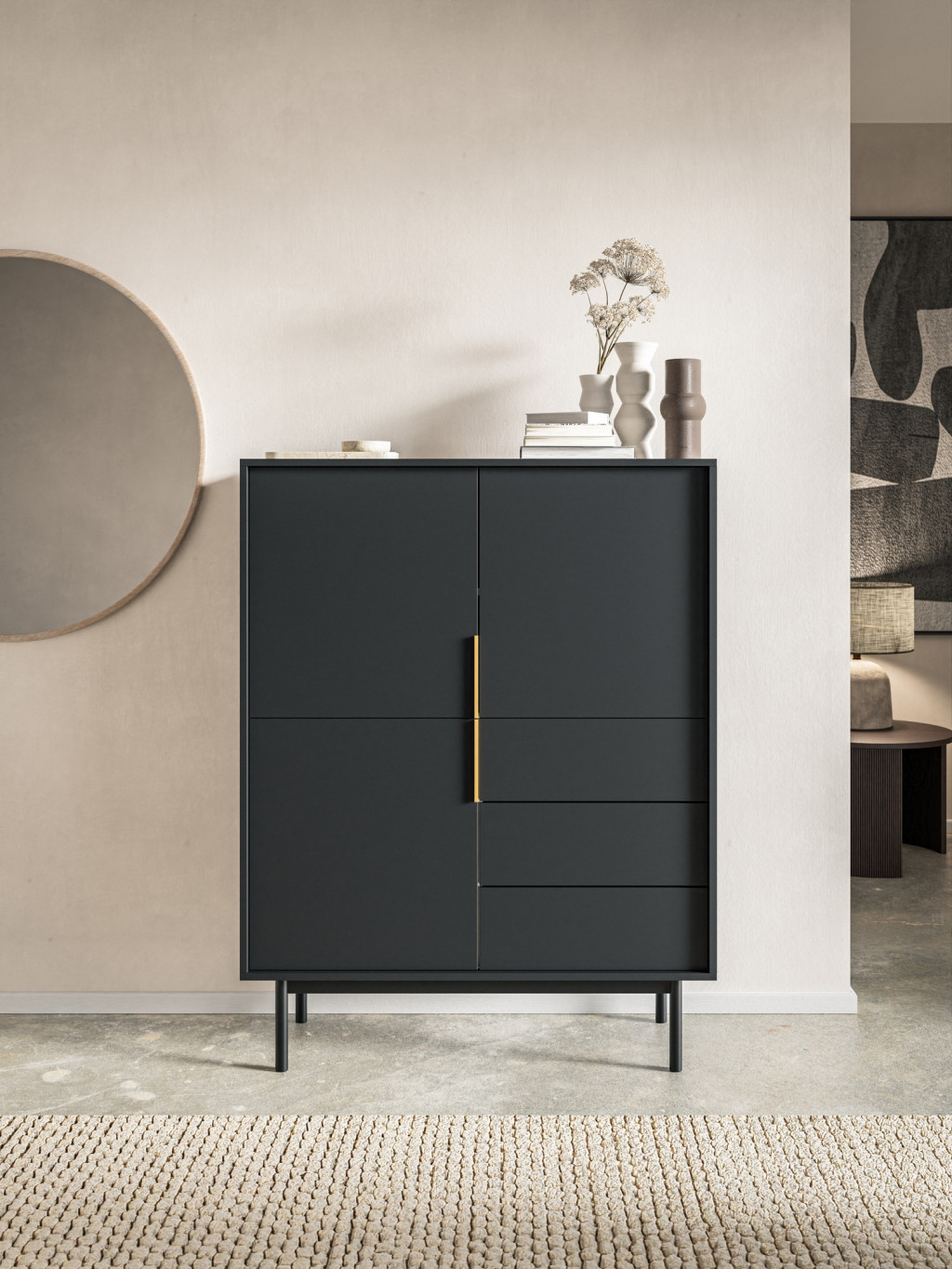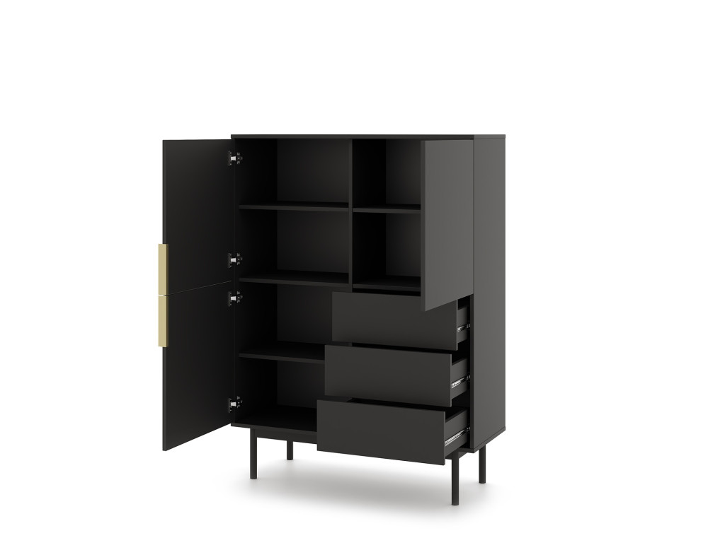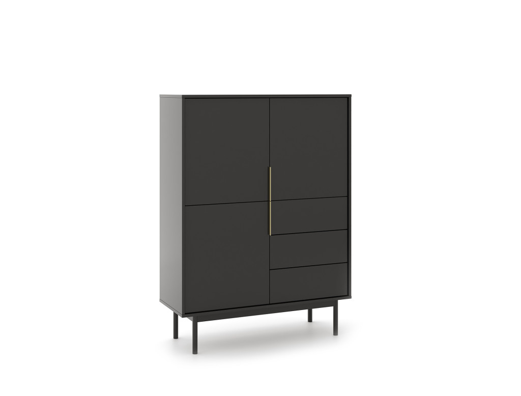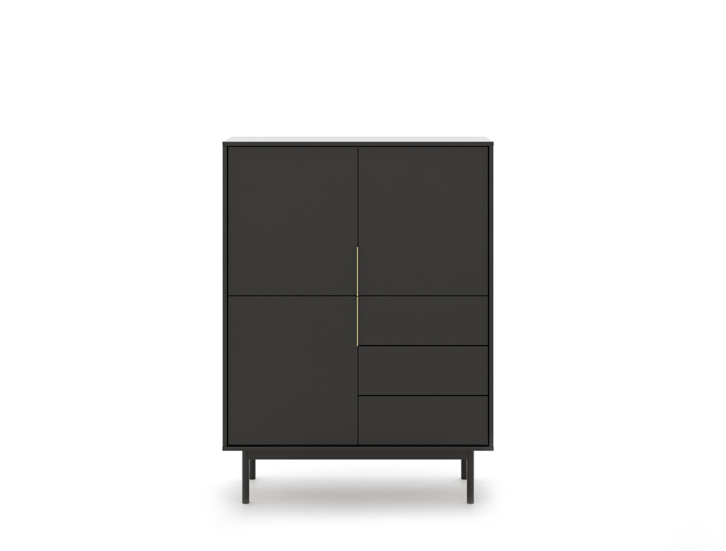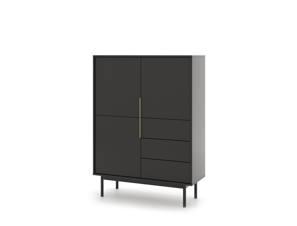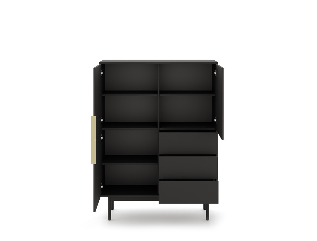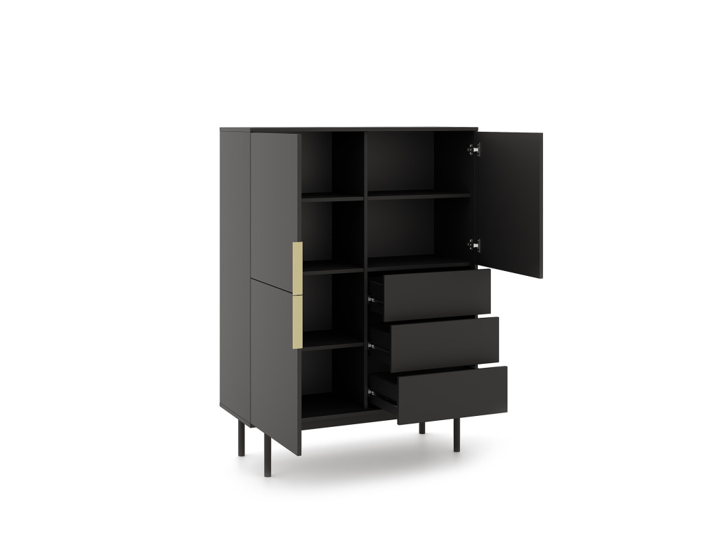 Magas komód 3 ajtóval és 3 fiókkal fekete színben arany fogantyúkkal – VIVA VI04