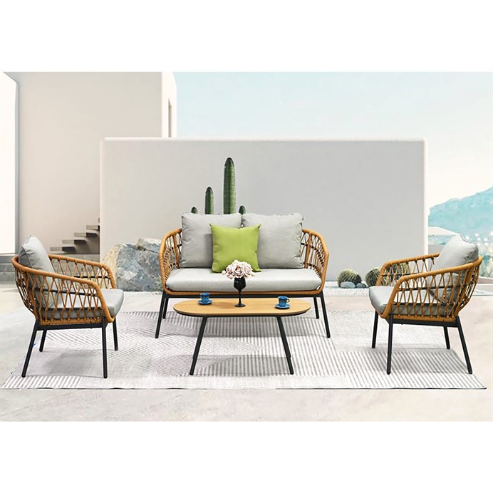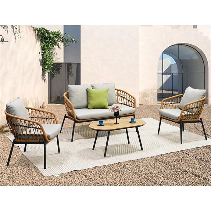 Kerti Ülőgarnitúra, Fém + Polyrattan, Barna. AZ-L1880 NAT